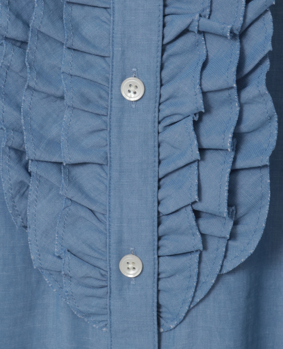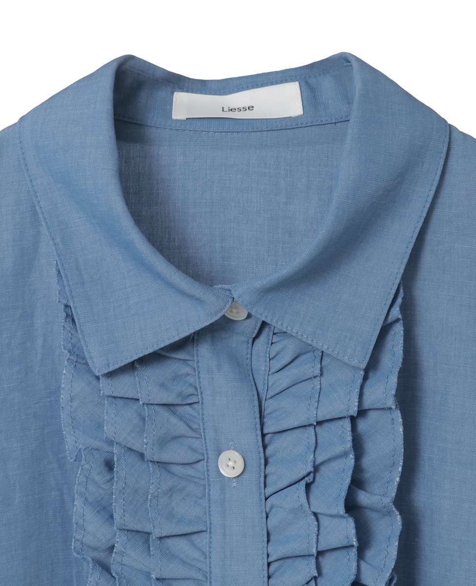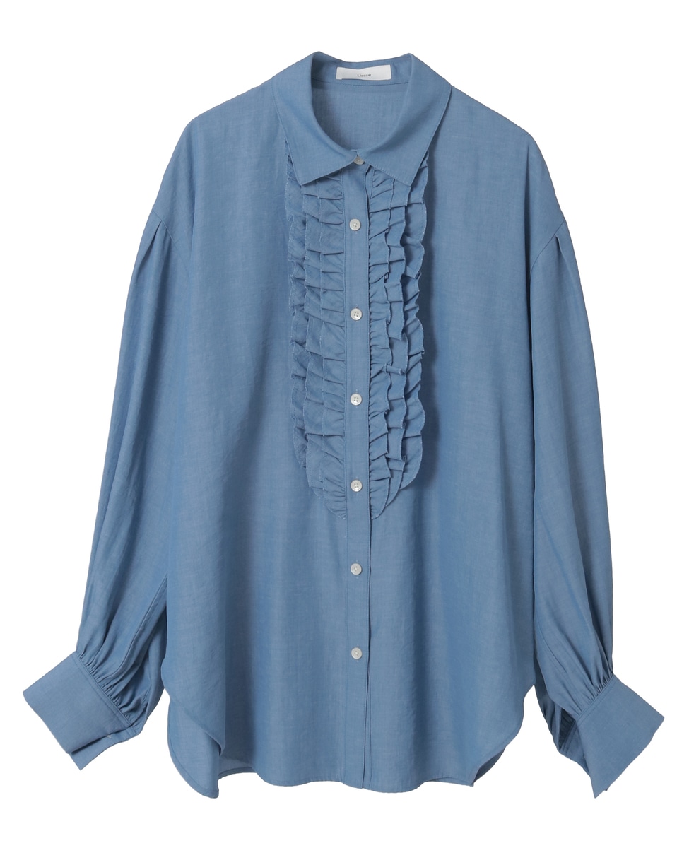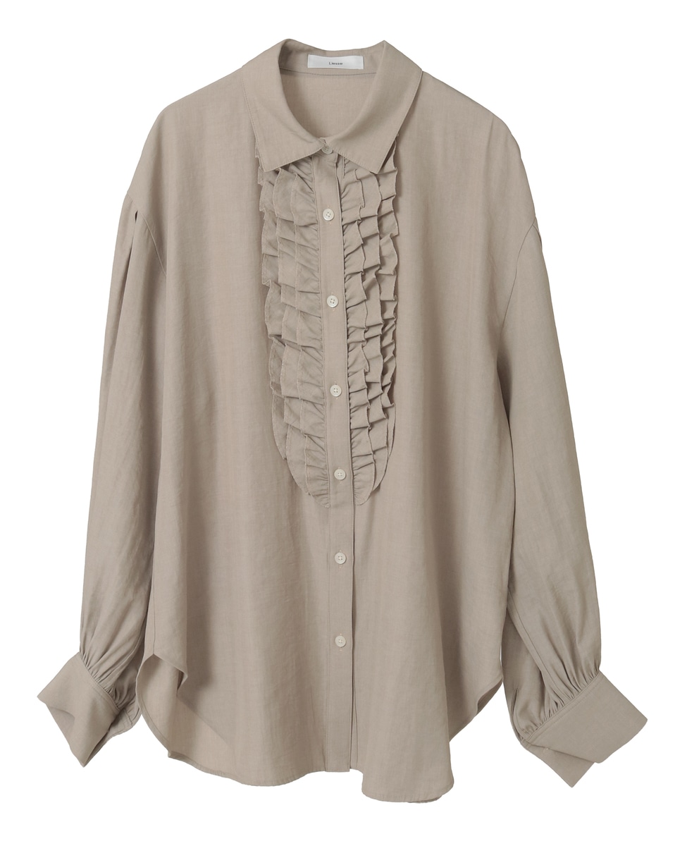 切りっぱなしのフリルディテールで甘さを抑え、こなれた雰囲気に仕上げています。