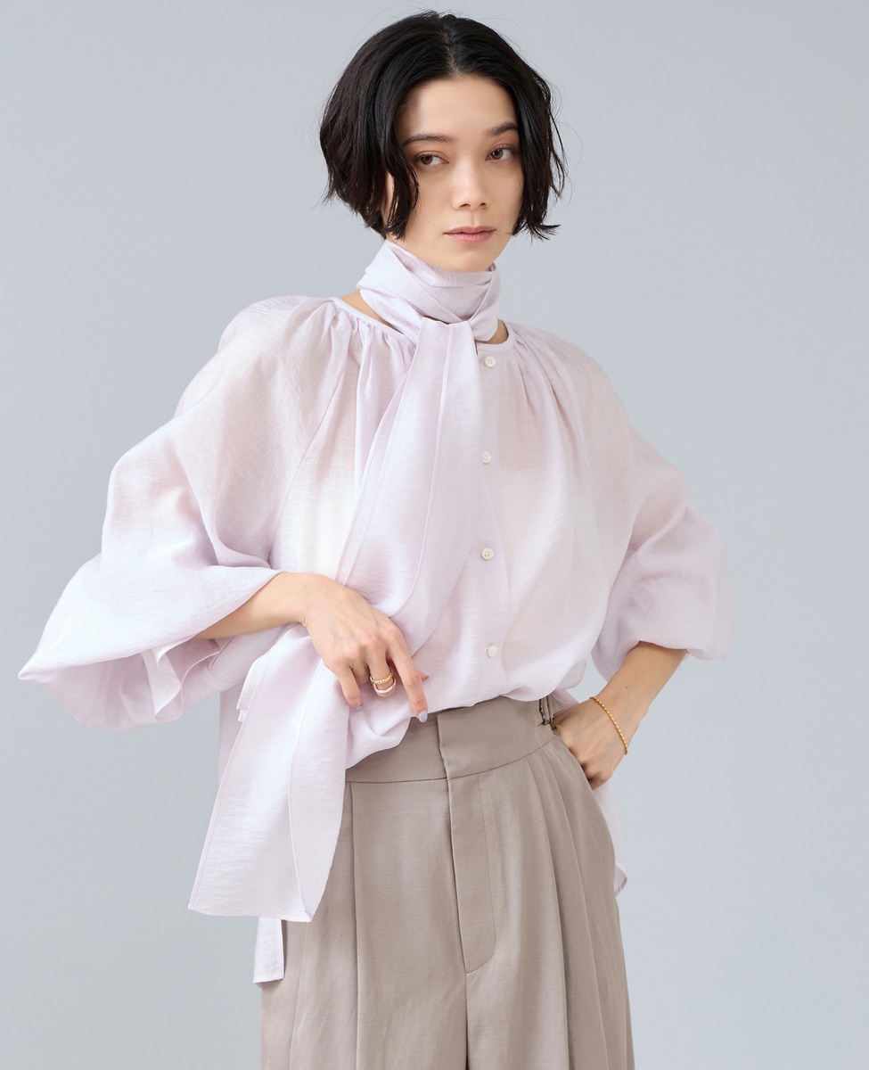 ナチュラルな華やかさを添える、ふんわりとしたボウタイブラウス。