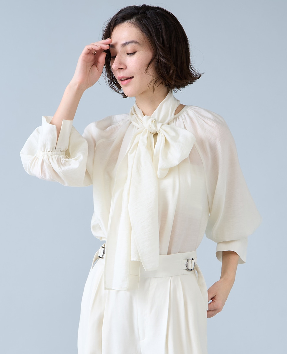 ボウタイ付きギャザーブラウス