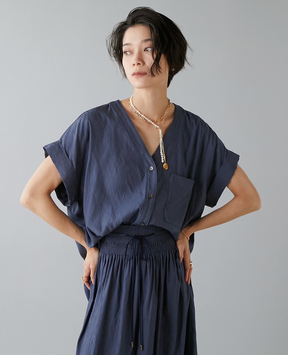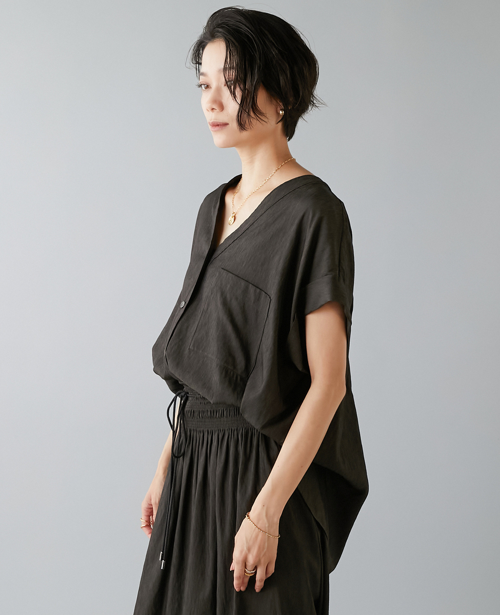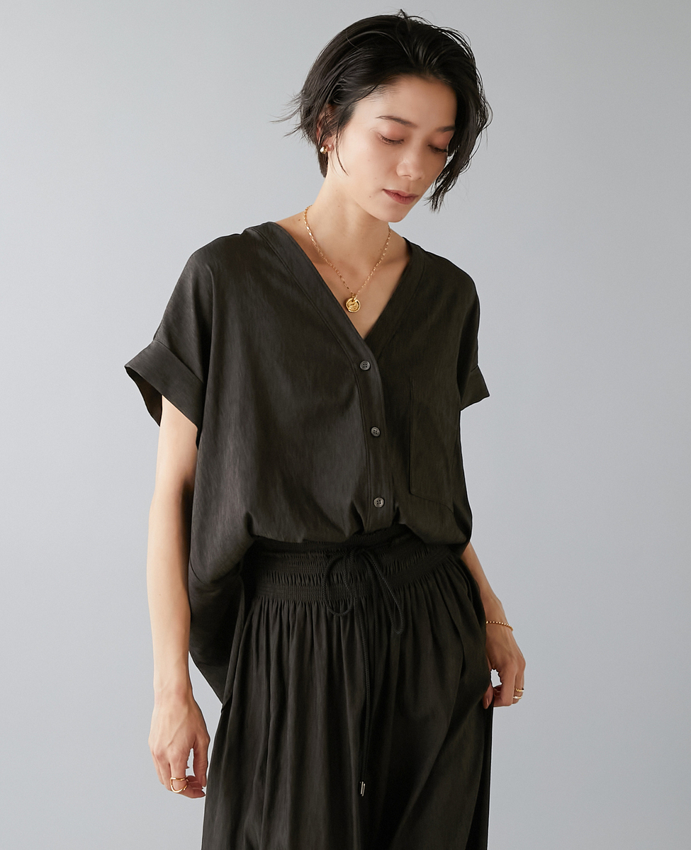 フレンチスリーブギャザーブラウス