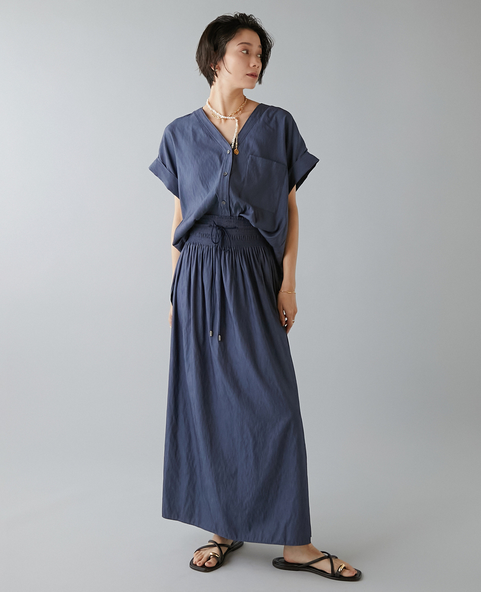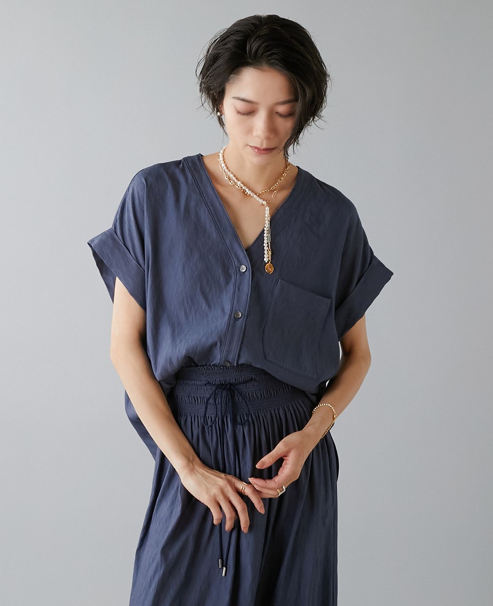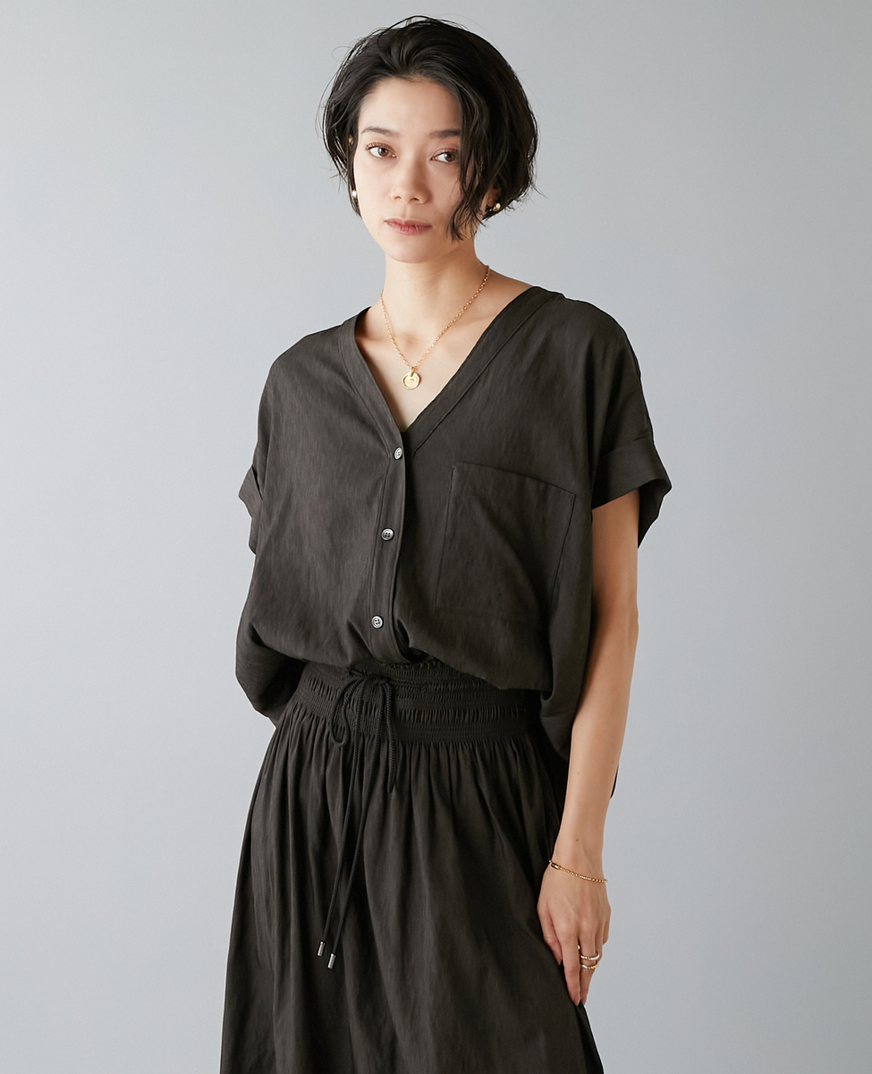 フレンチスリーブギャザーブラウス