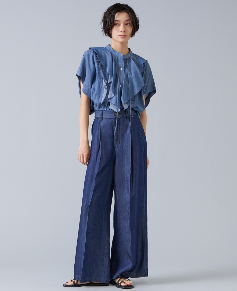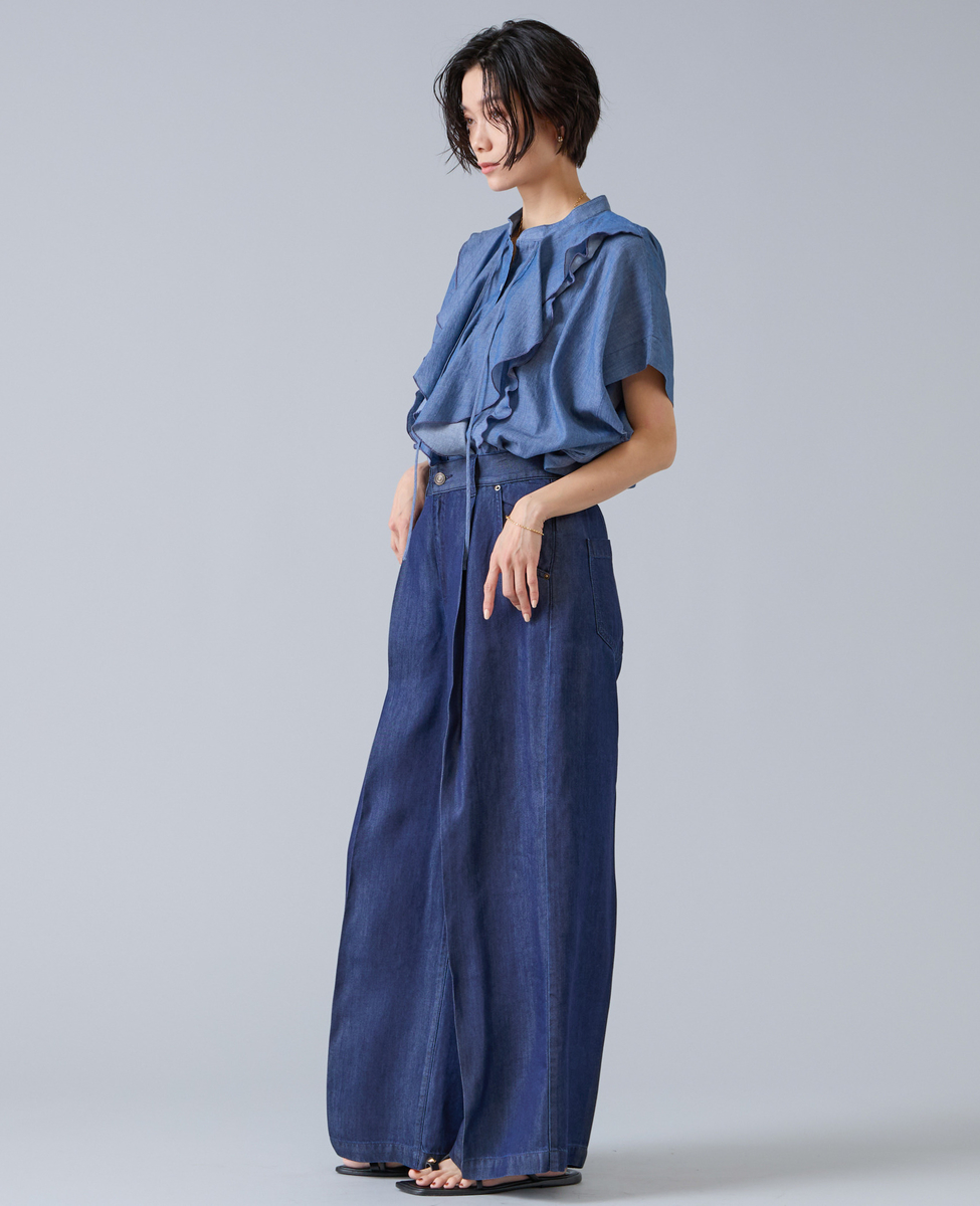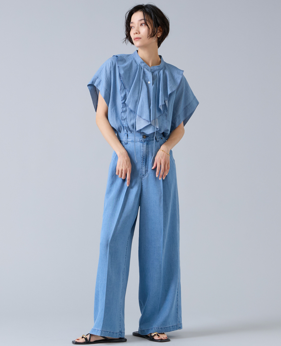 シアーデニムフリルブラウス