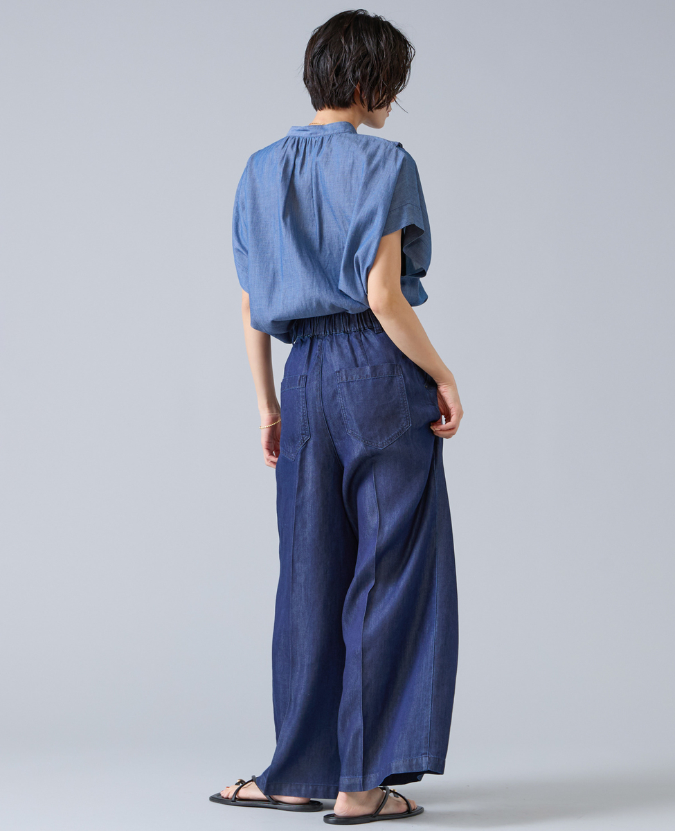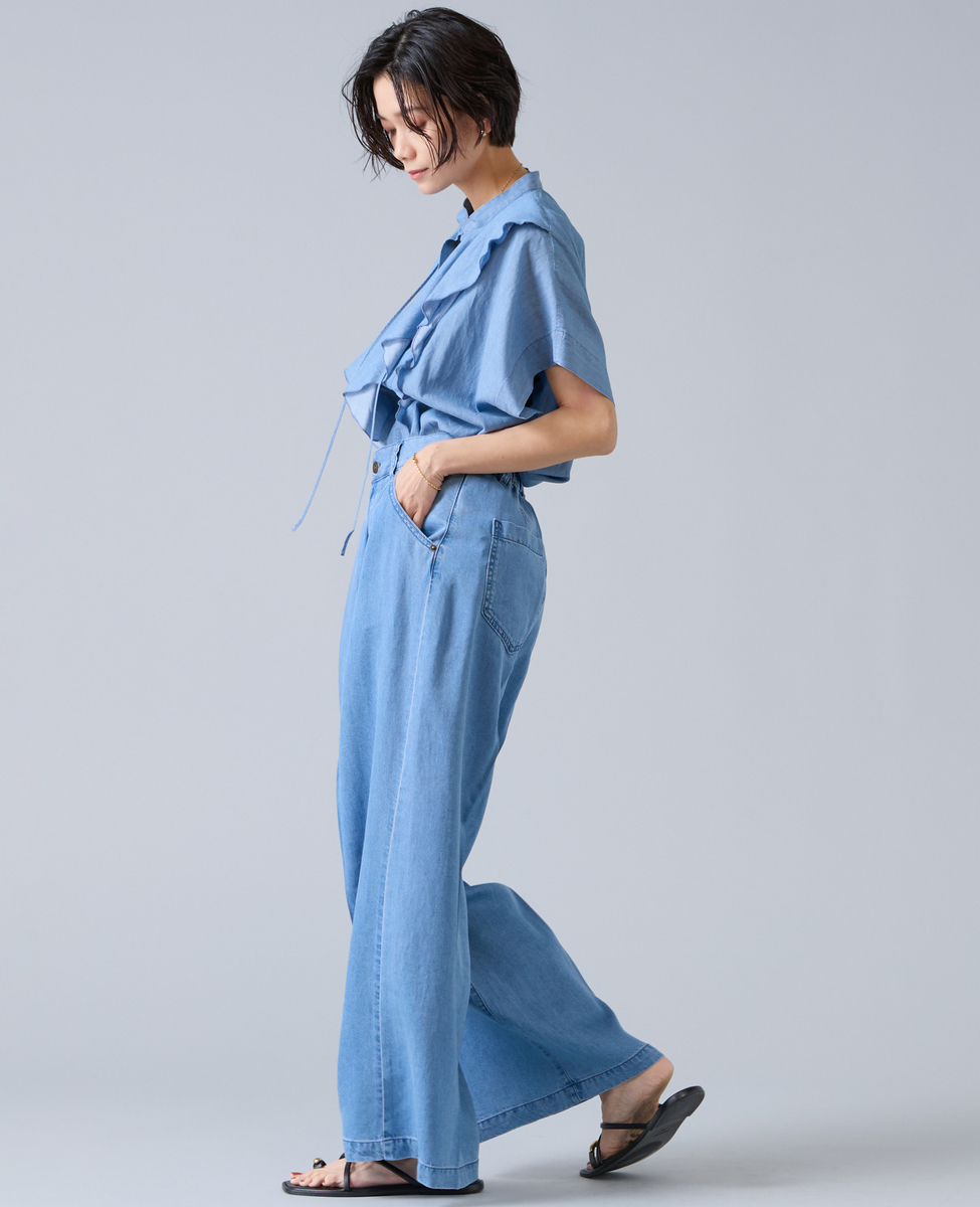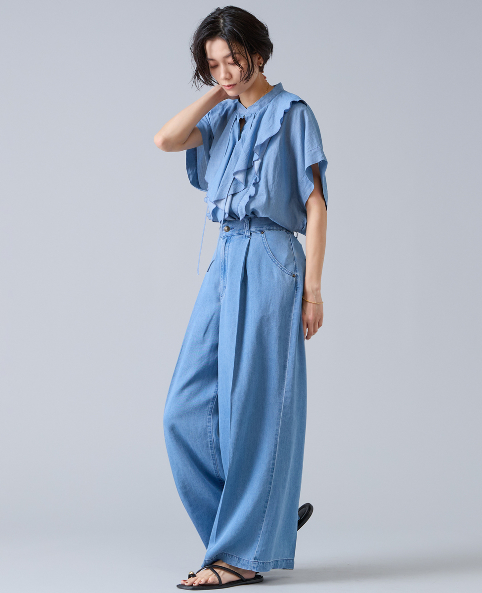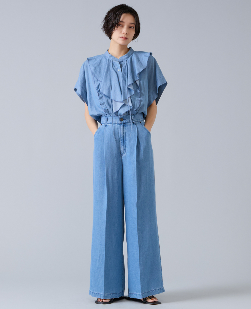 シアーデニムフリルブラウス