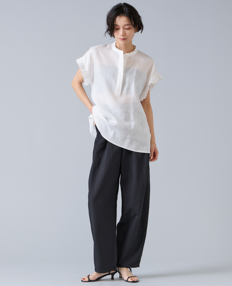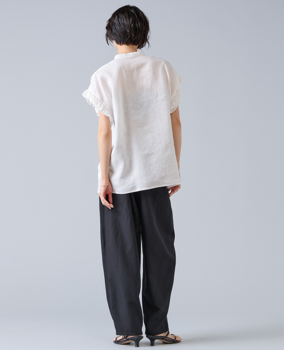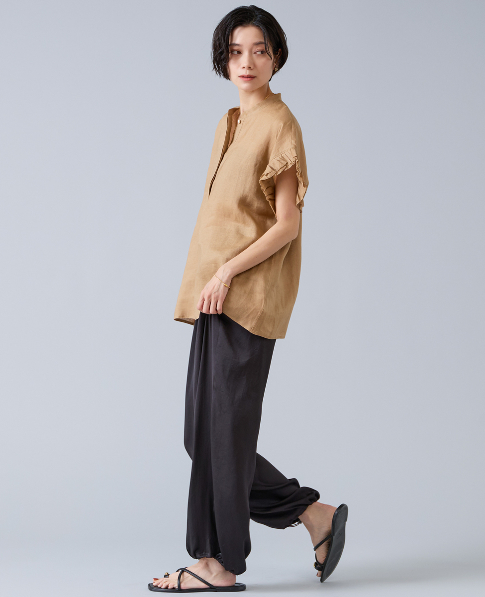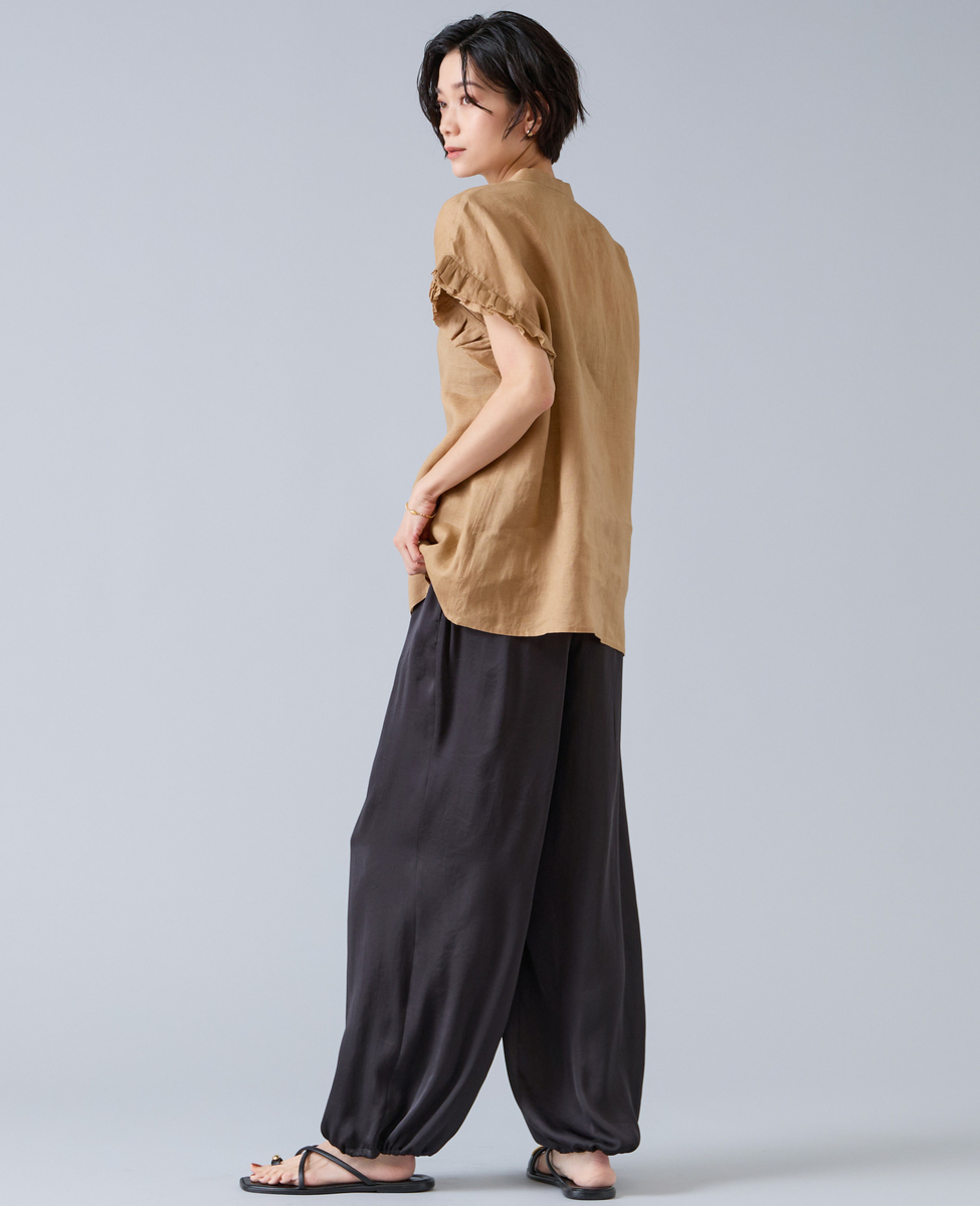【定番】リネンギャザースリーブブラウス