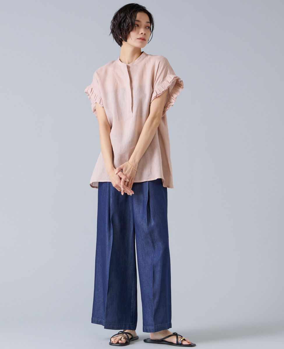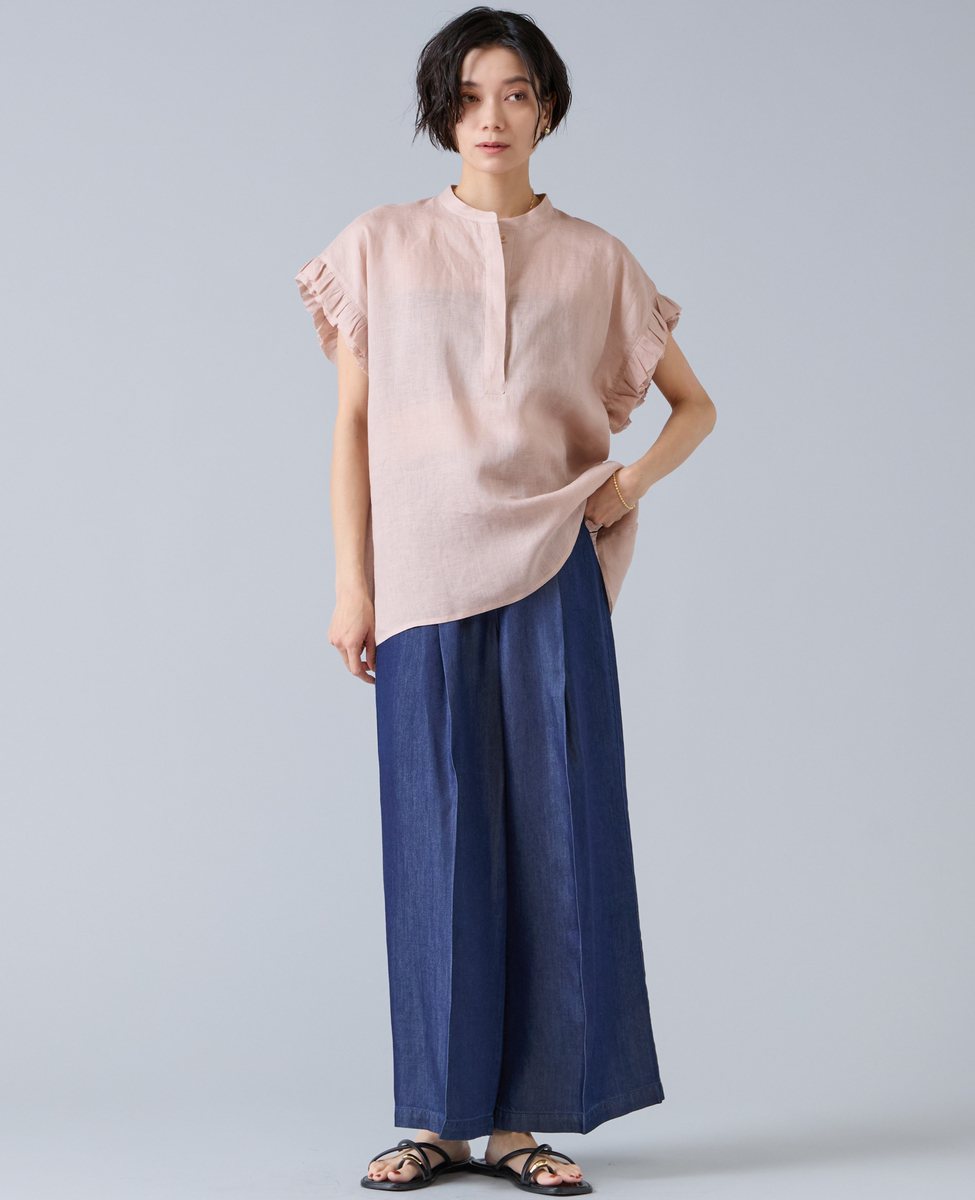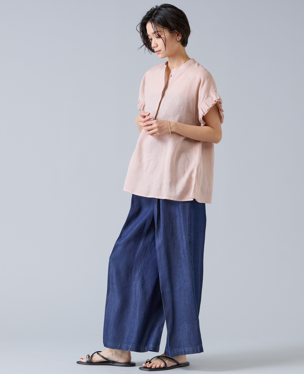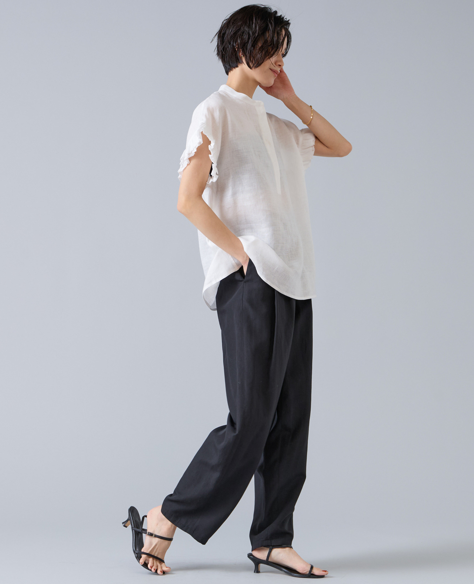 【定番】リネンギャザースリーブブラウス