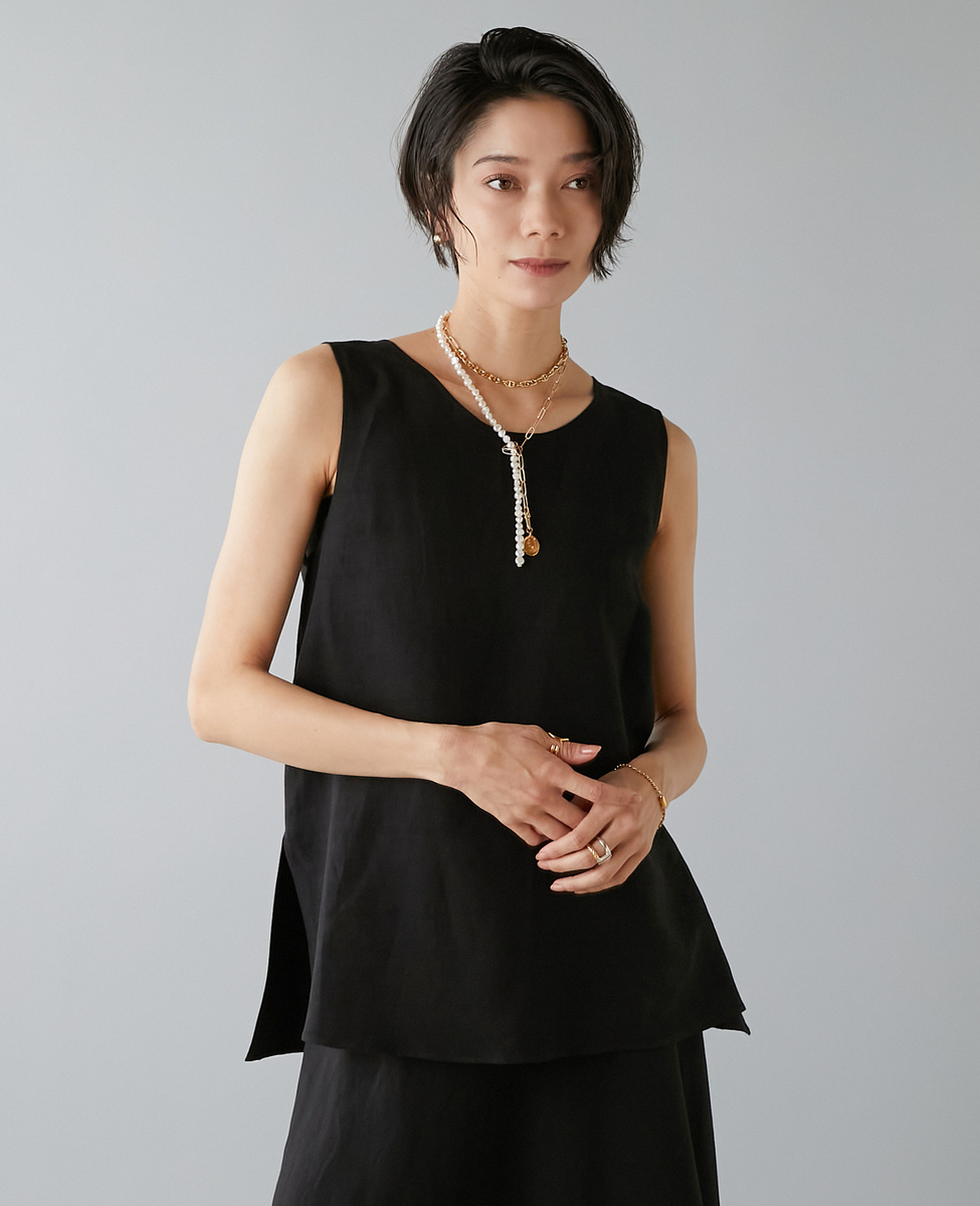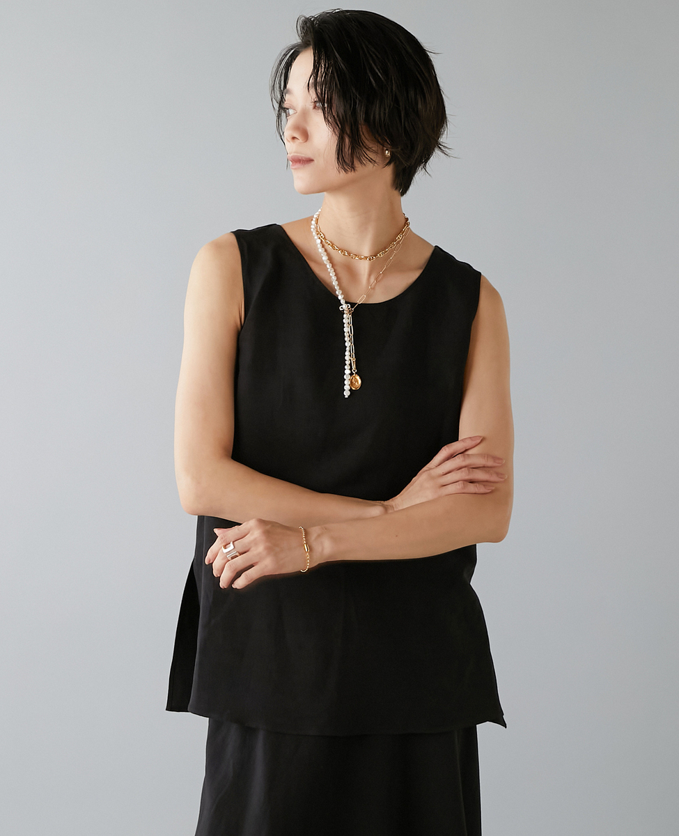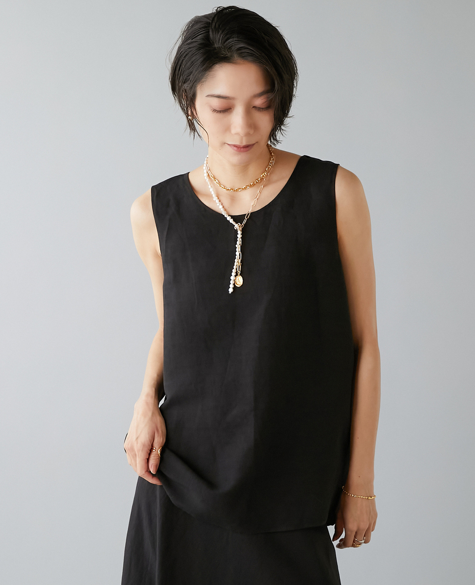 レーヨン/リネンノースリーブプルオーバー
