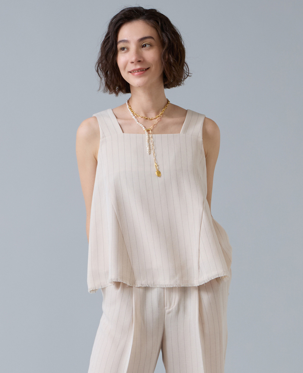 麻調ノースリーブブラウス
