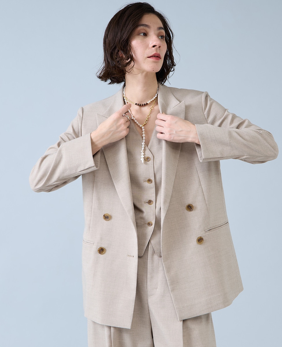 麻調ピークドダブルジャケット