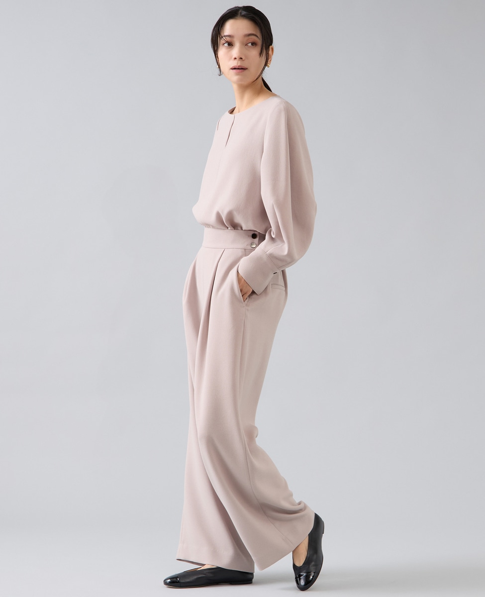 やや高めのウエストベルトで、スタイルアップなバランスに。