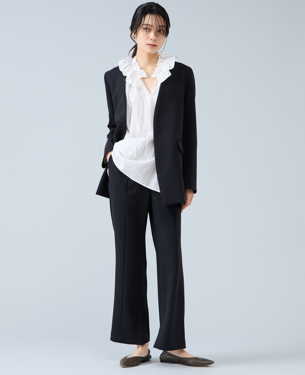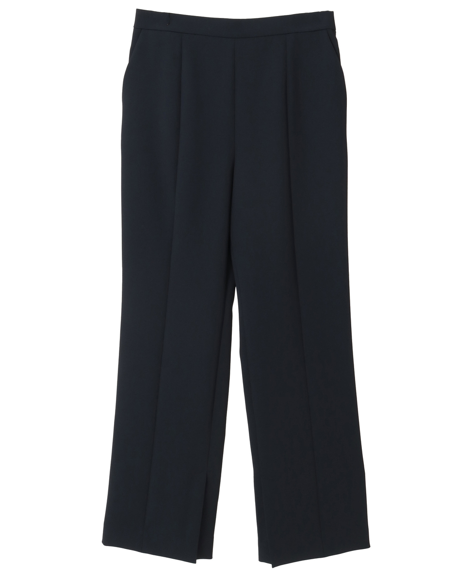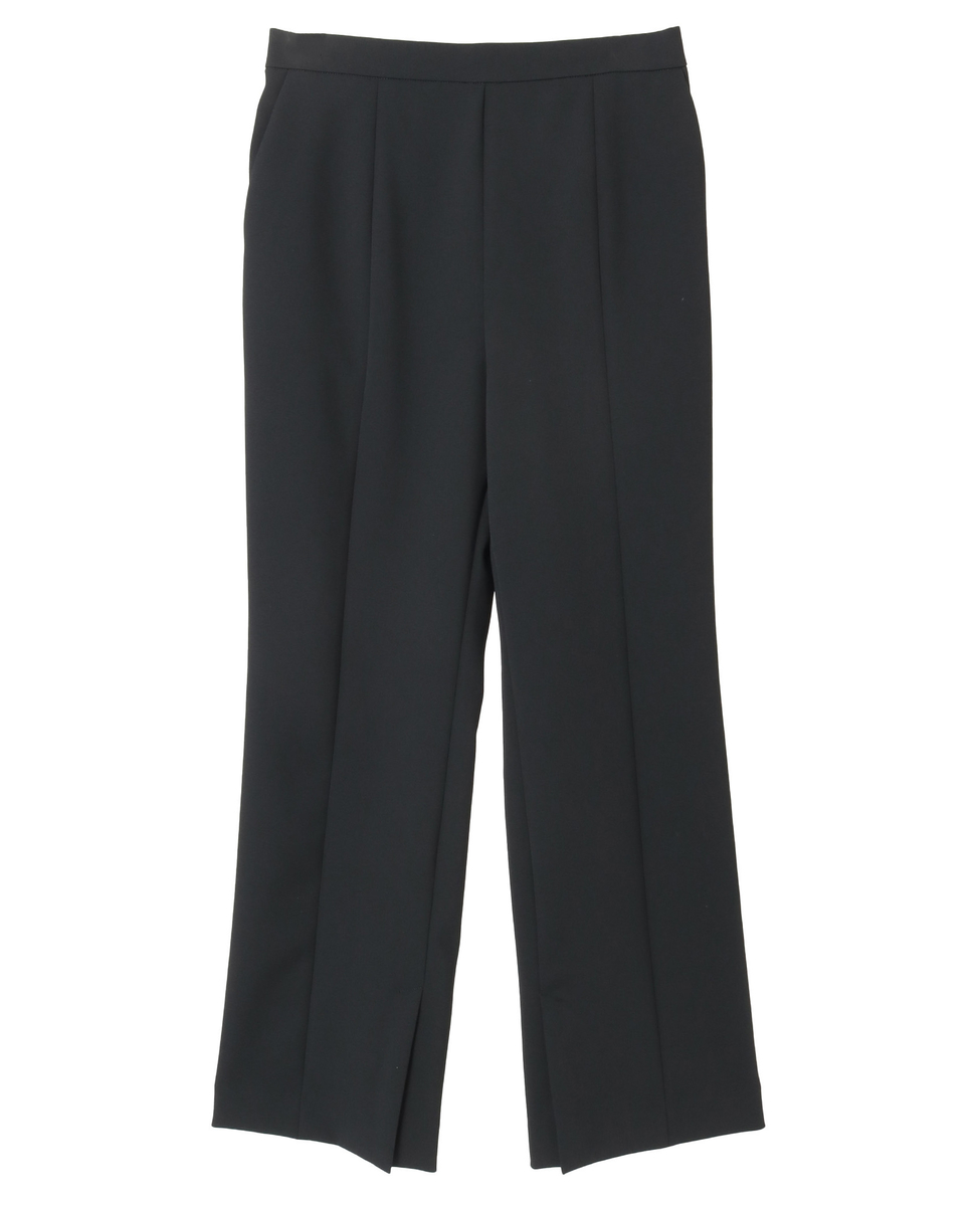 程よいフレアラインと裾のスリットがポイントの美脚パンツ。