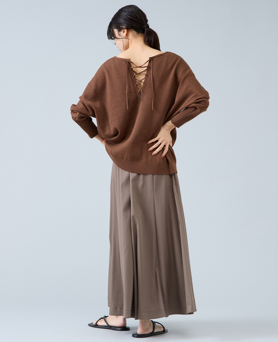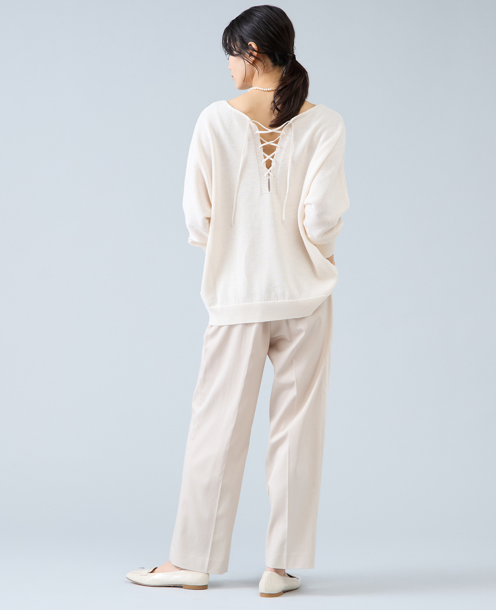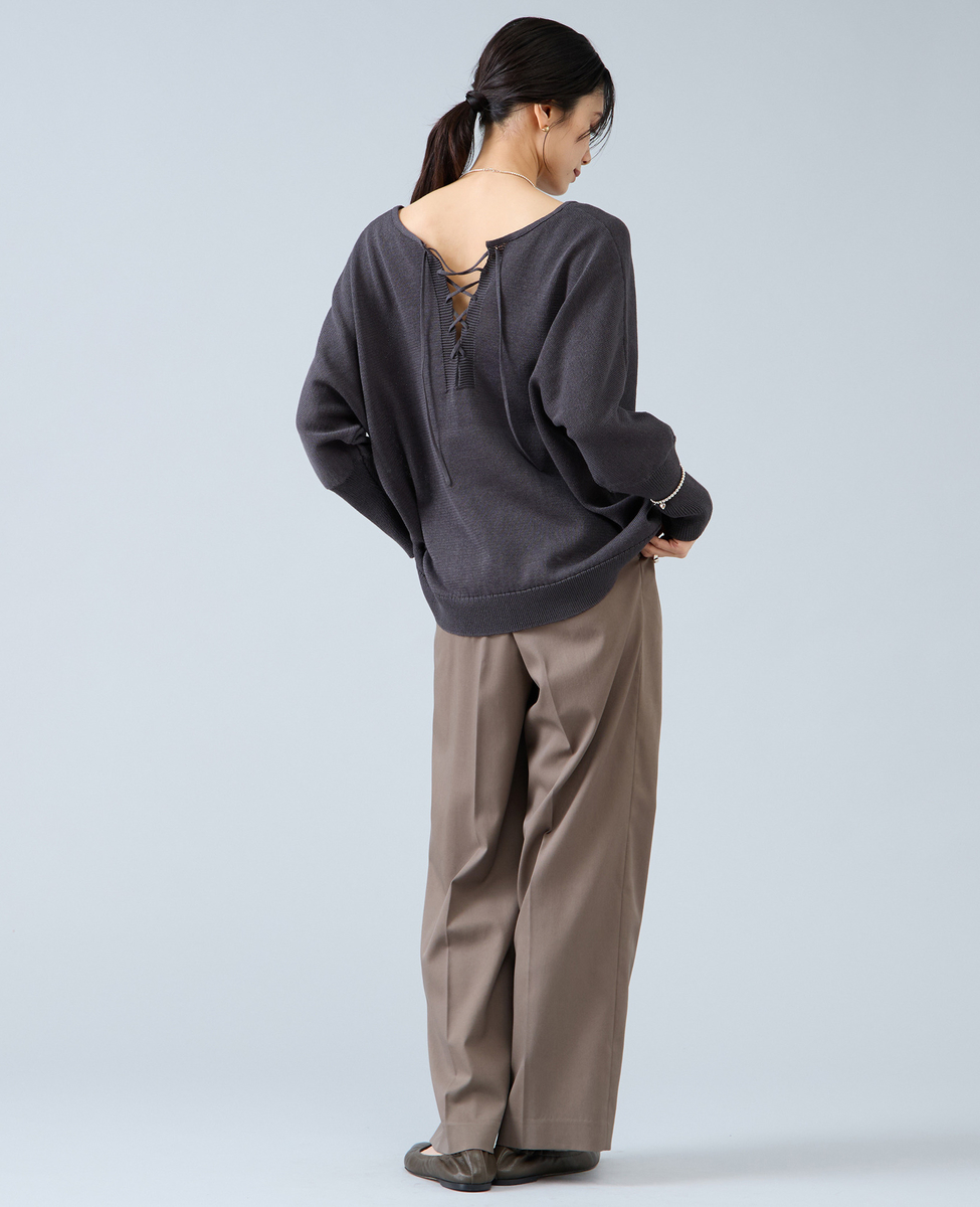 レースアップのディテールが映える、後ろ姿まで美しいニットプルオーバー。