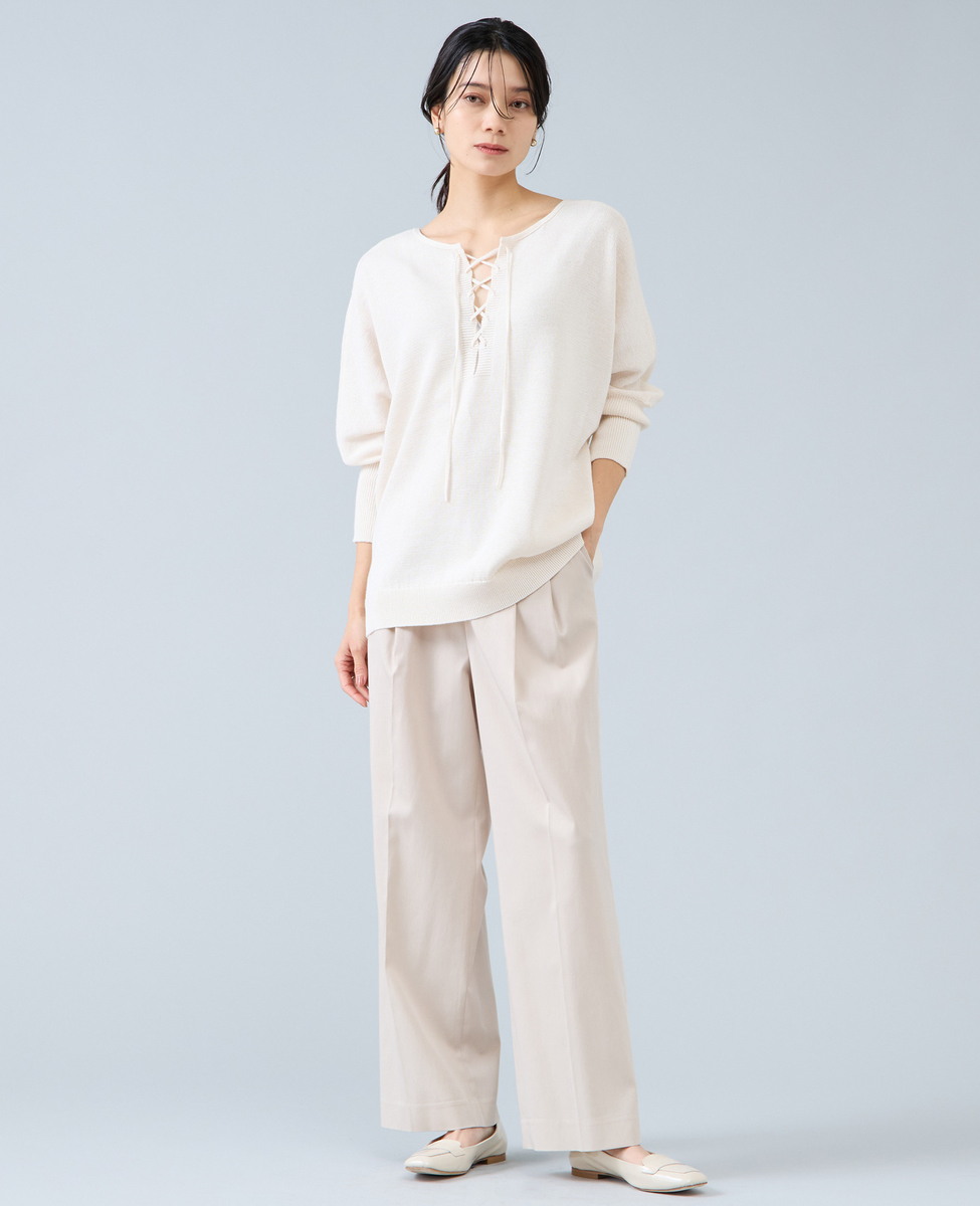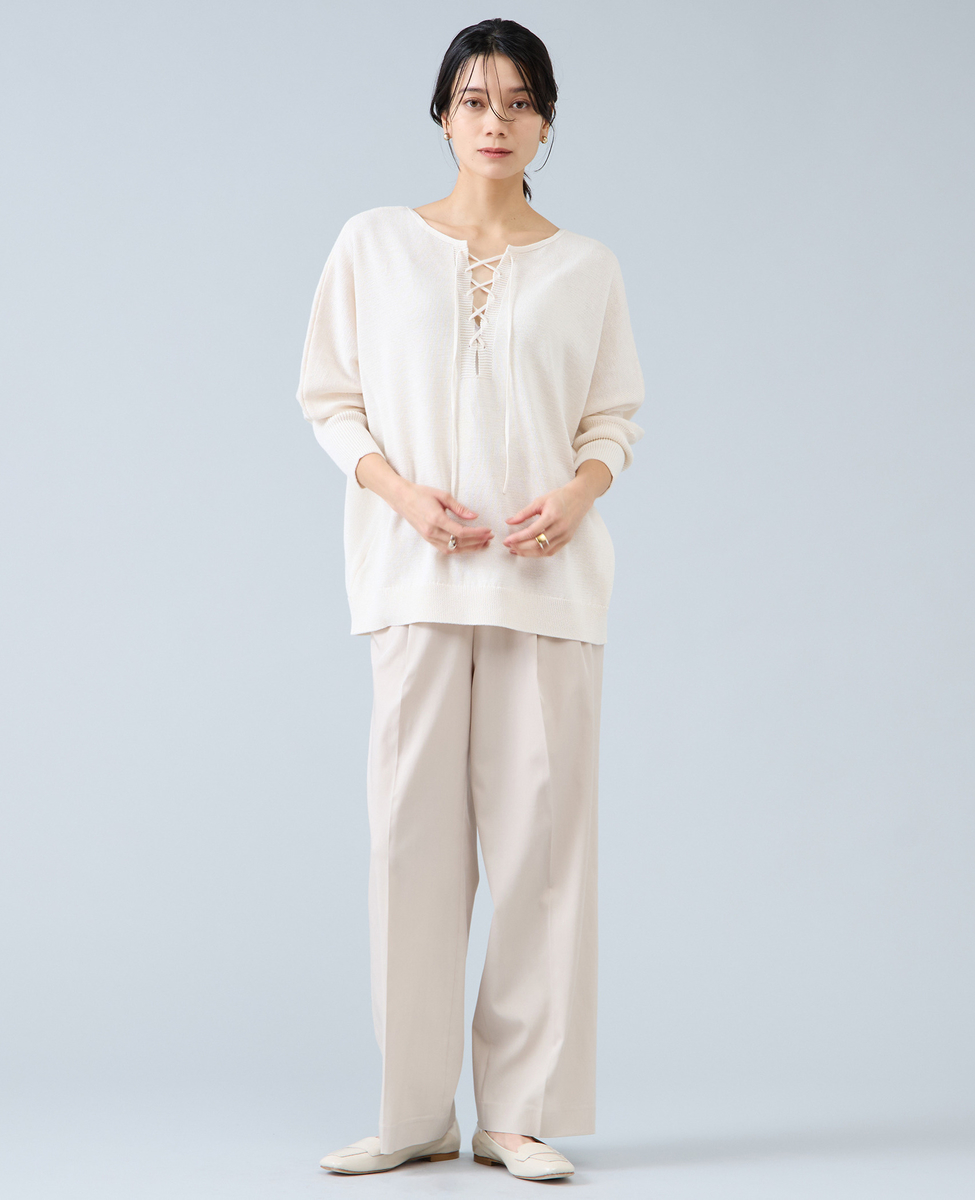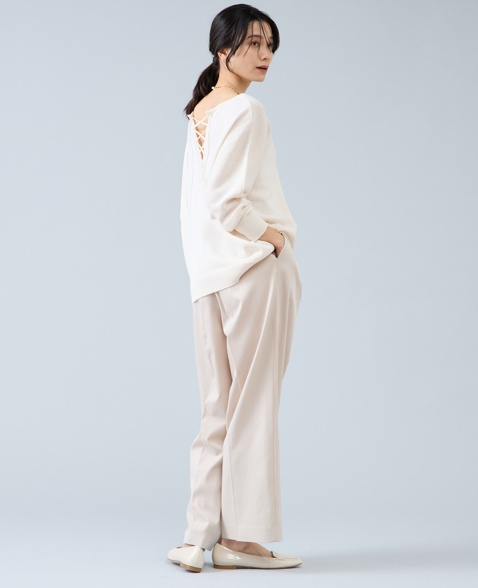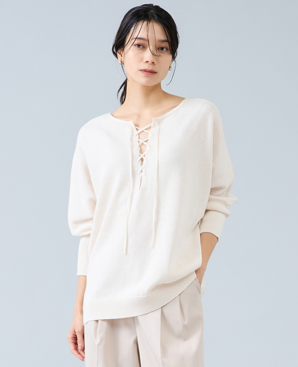レースアップのディテールが映える、後ろ姿まで美しいニットプルオーバー。