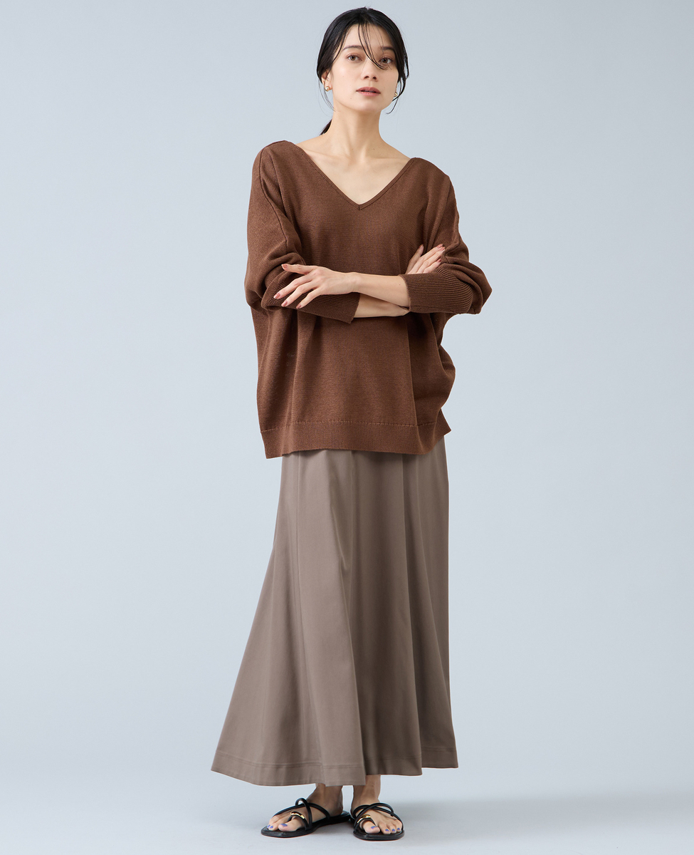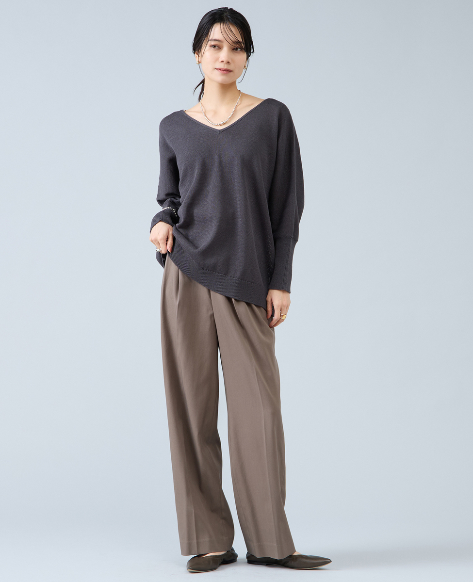 前身頃はシャープなVネックで春らしい抜け感を演出します。