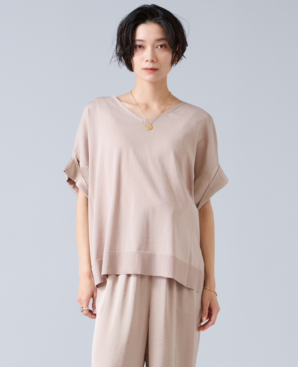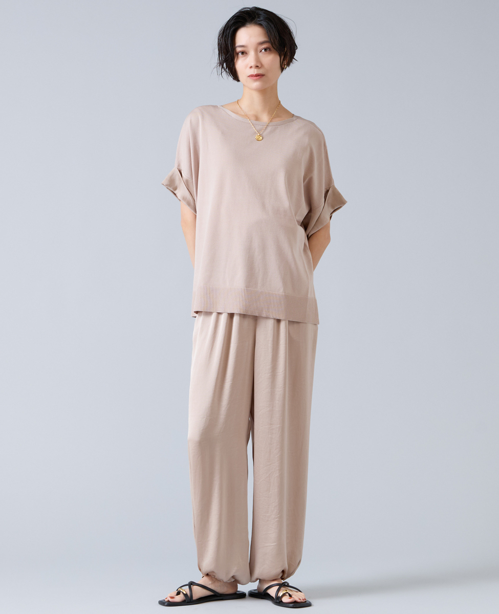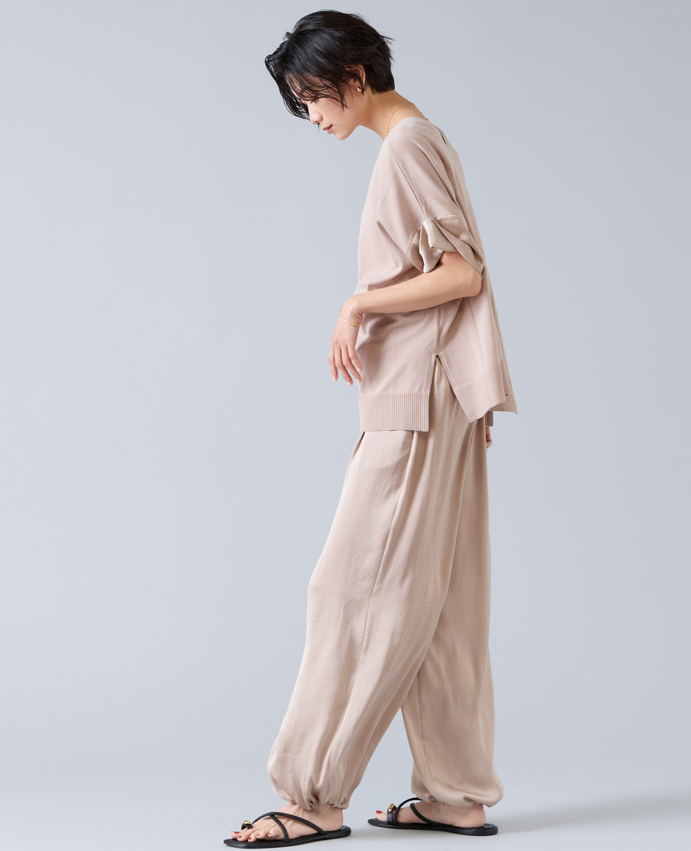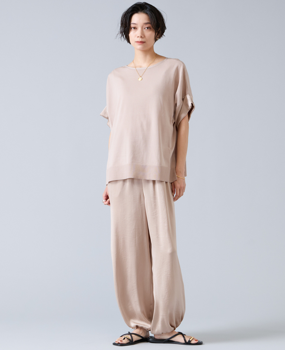 袖口には、シルクのような上品な光沢とドレープ感が魅力の