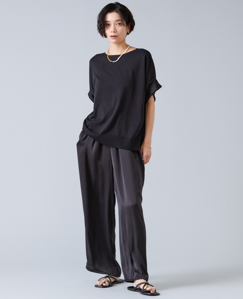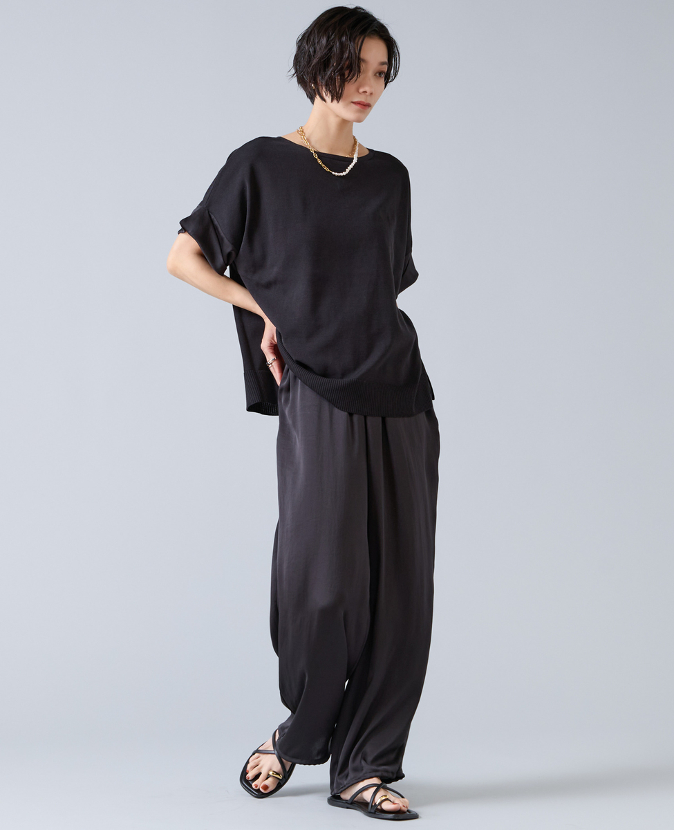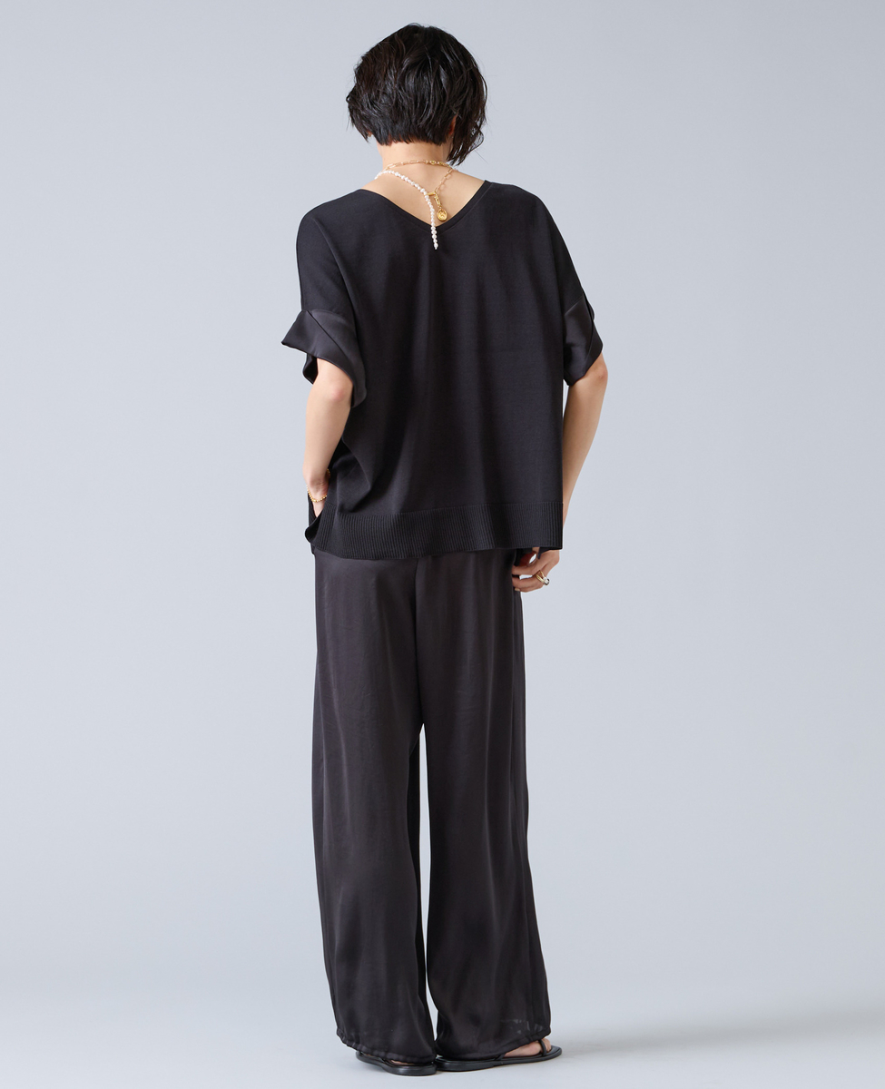 【定番】袖サテンニット