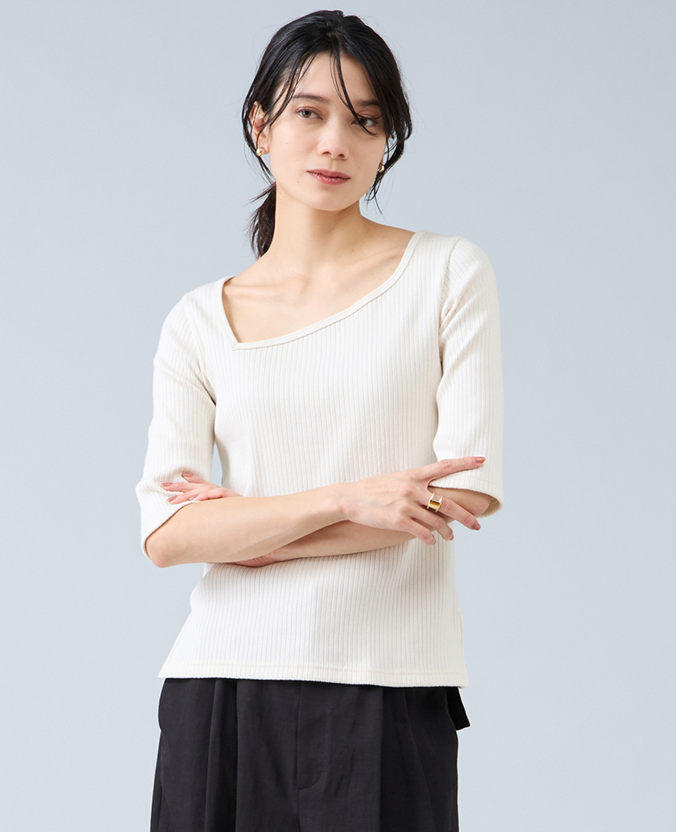 アシンメトリーネック2WAYテレコプルオーバー