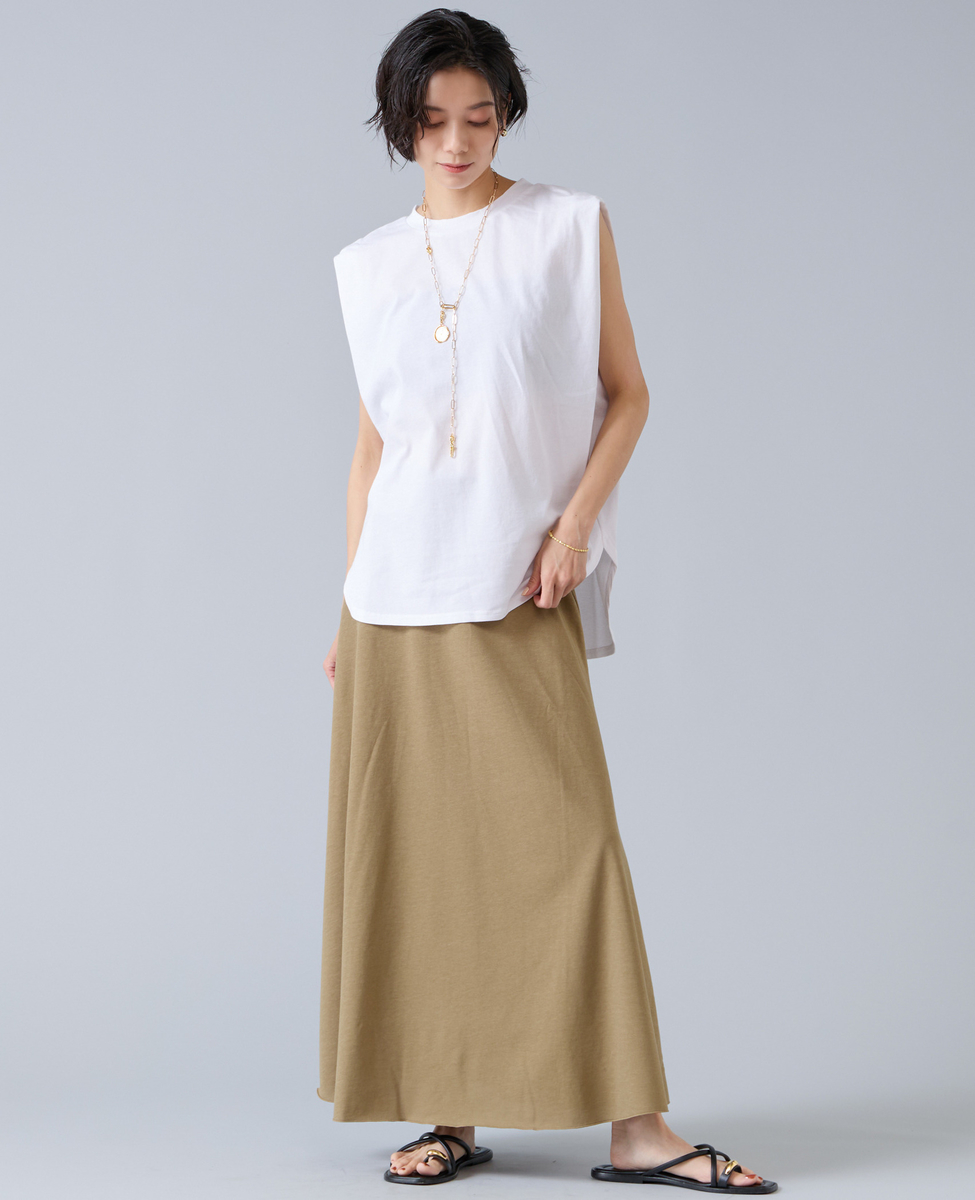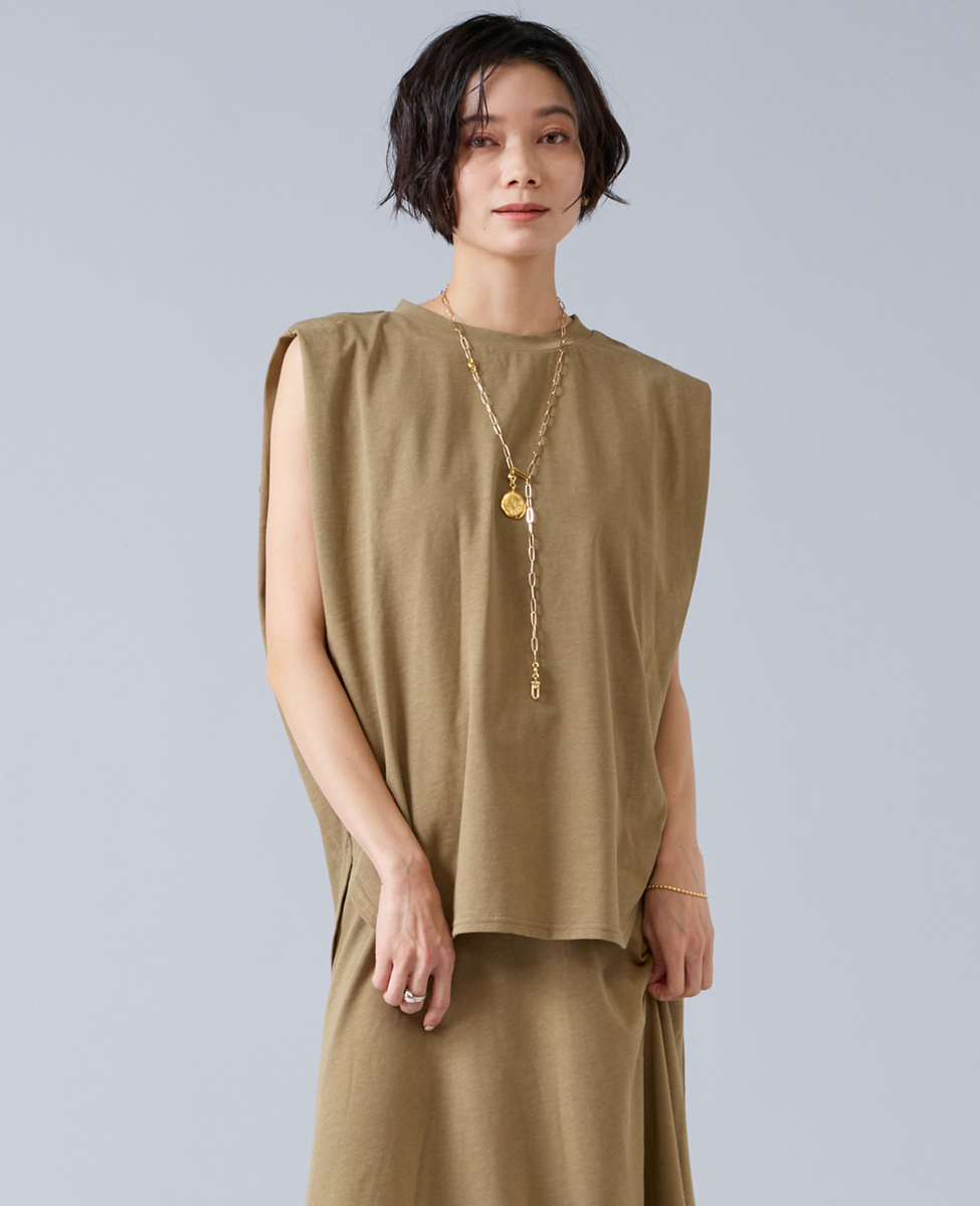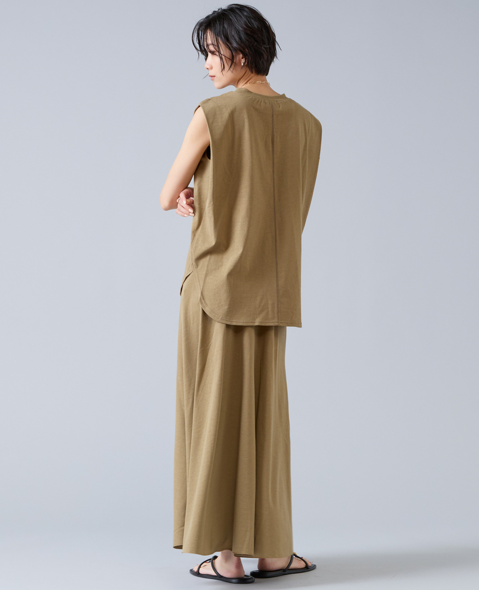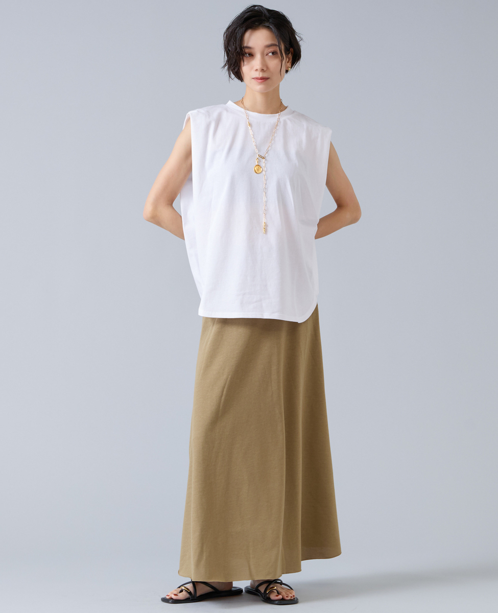 強撚のきれいめカットソー素材で、ラフすぎず洗練された印象に。