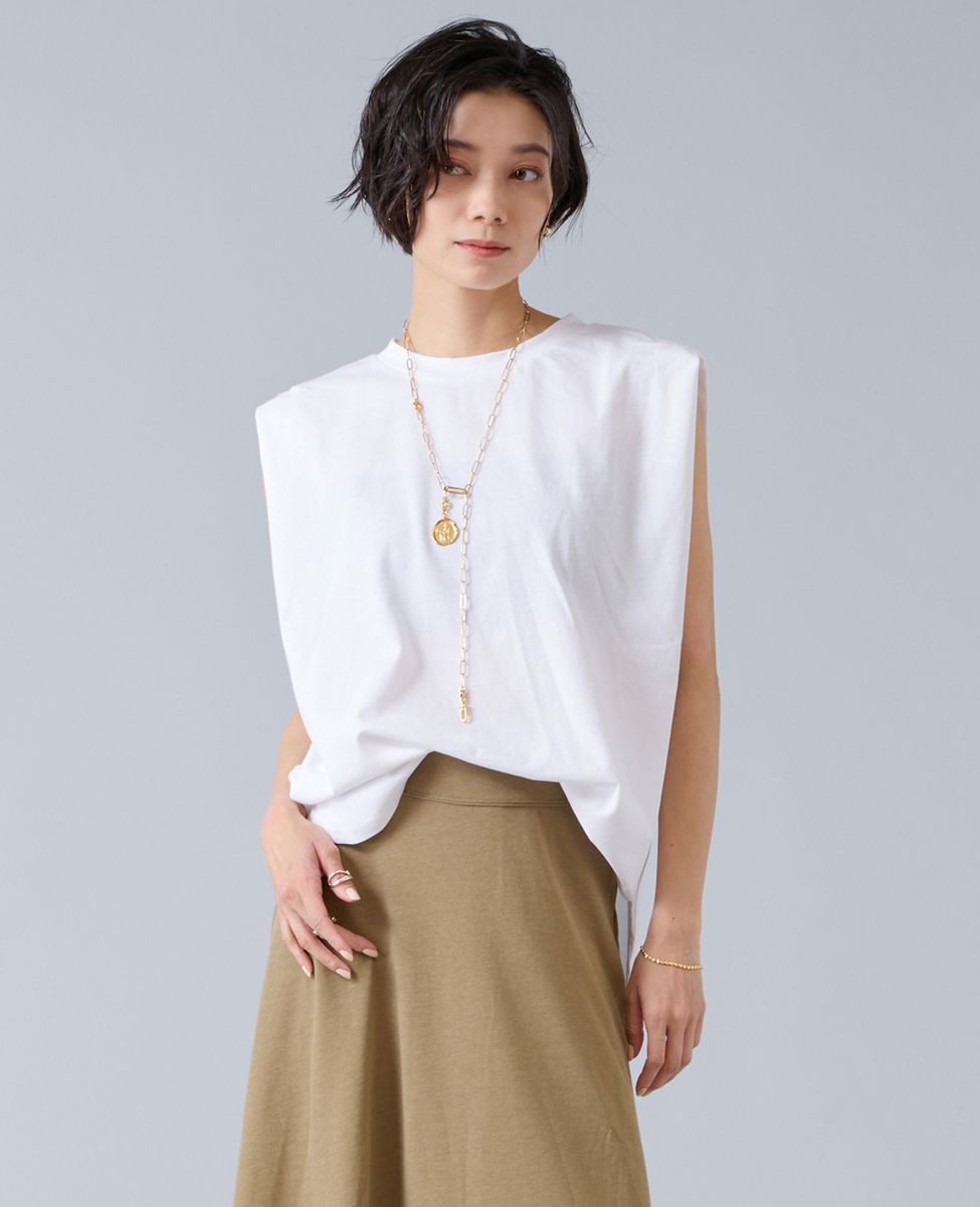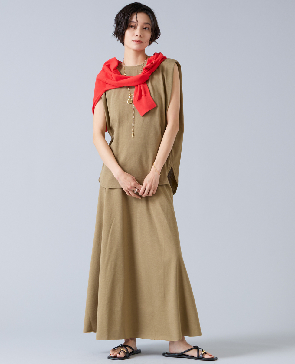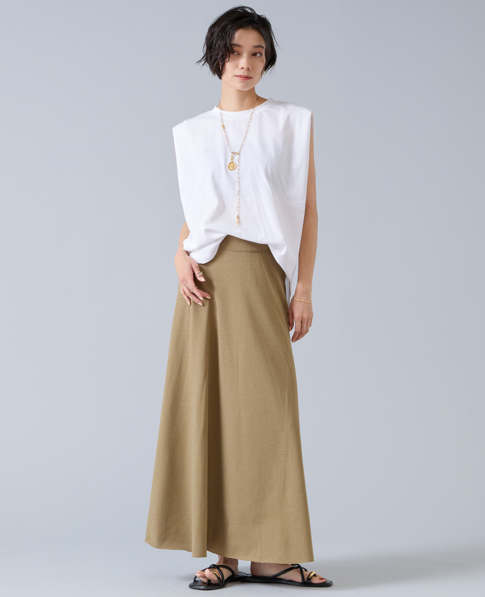 強撚のきれいめカットソー素材で、ラフすぎず洗練された印象に。