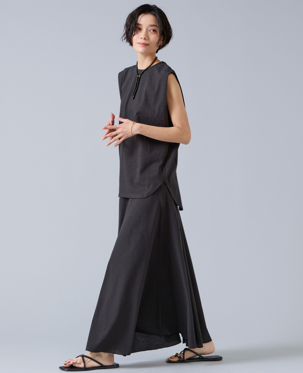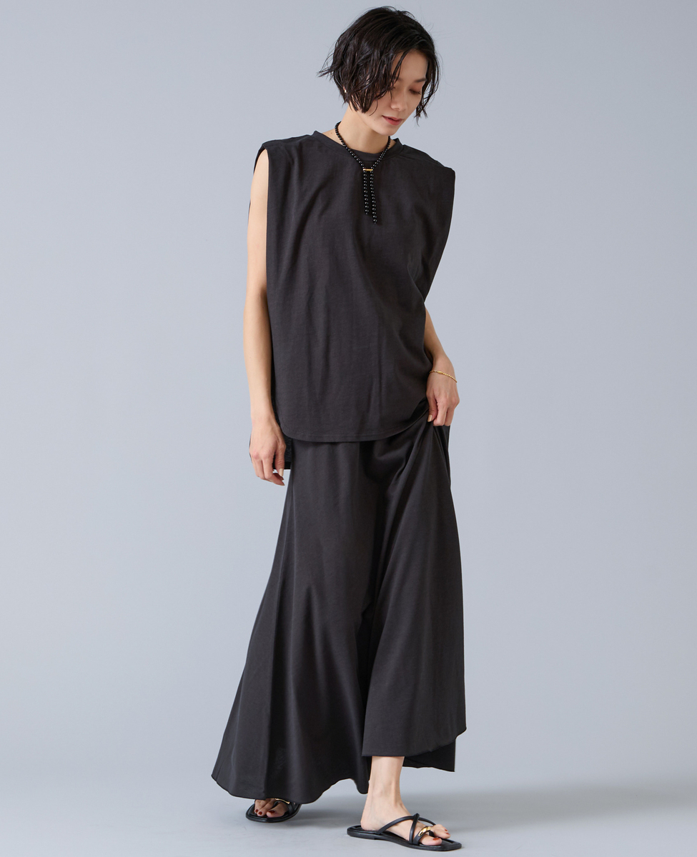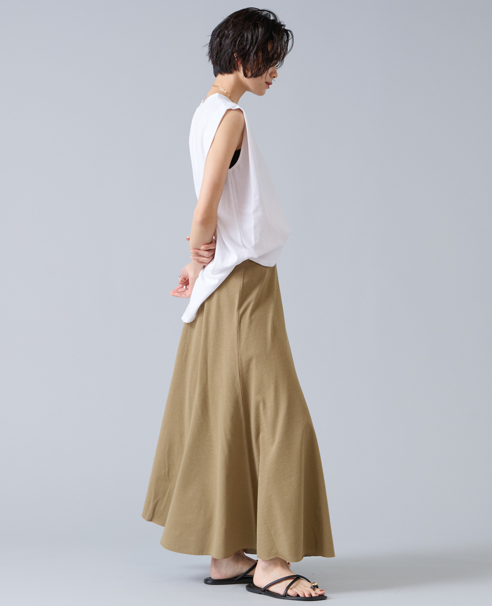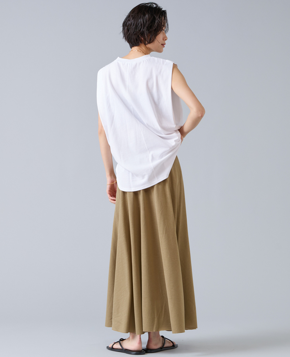 強撚のきれいめカットソー素材で、ラフすぎず洗練された印象に。
