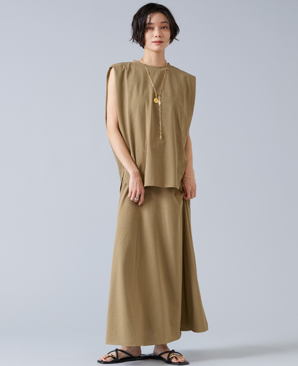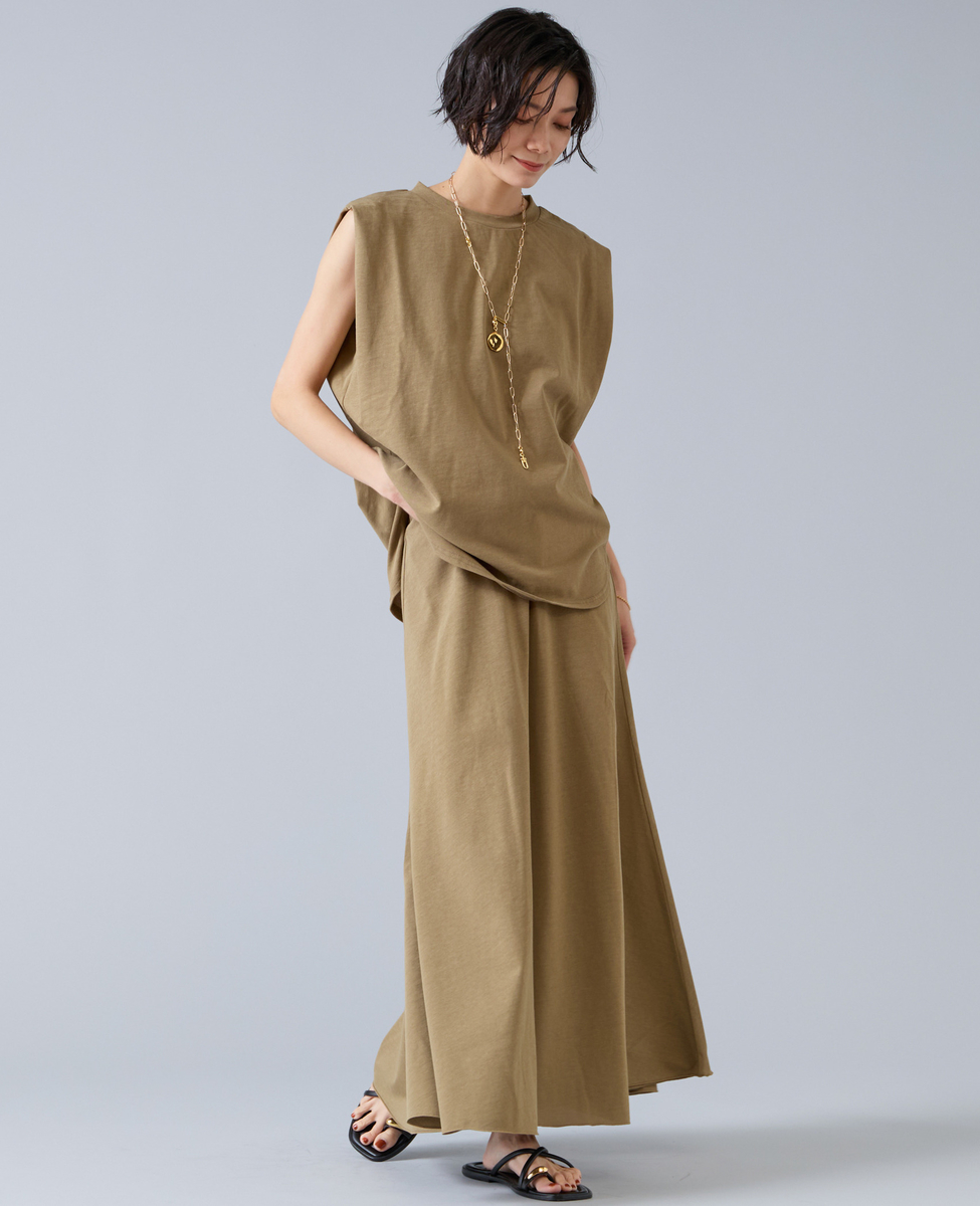 同素材スカート(A0166US468)とのセットアップコーデもおすすめ。