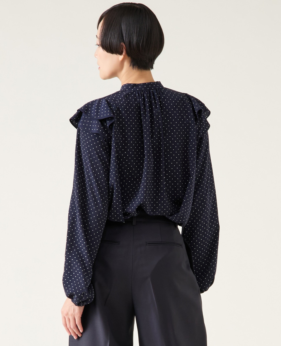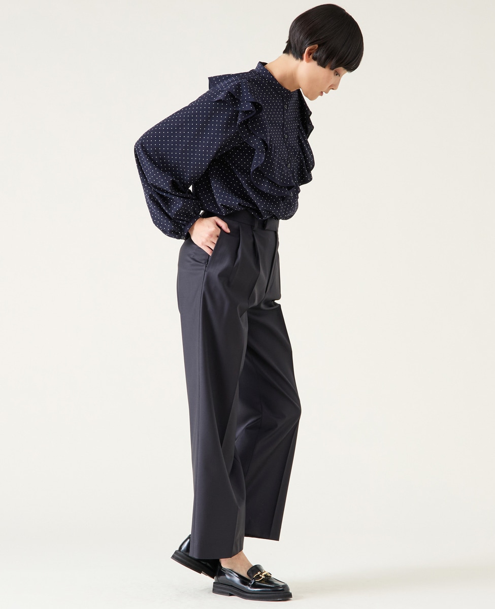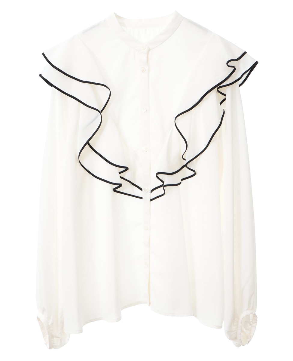 クラシカルでヴィンテージ感のあるフリル衿がポイントのブラウスです。カラーによって衿の縁取りがポイントになっています。