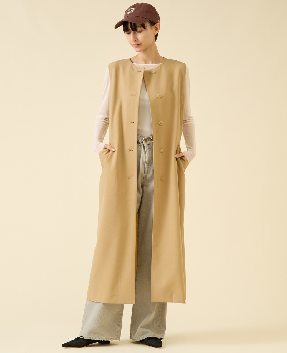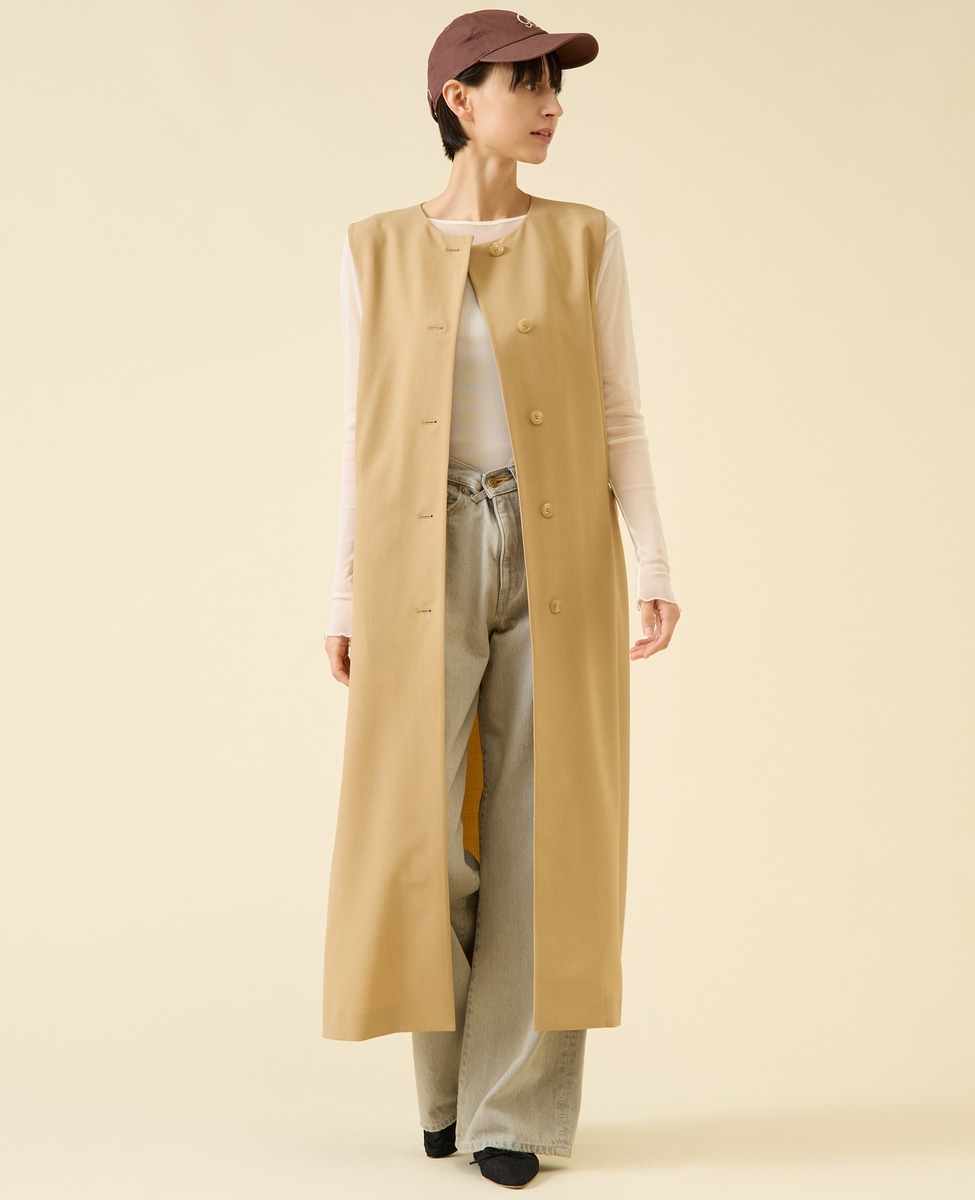 INにシャツやハイネックニットなどを合わせてクラシックに着用するのも素敵です。一枚でもパンツ合わせでセットアップにするのもお勧めです。