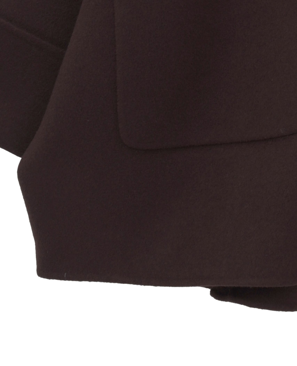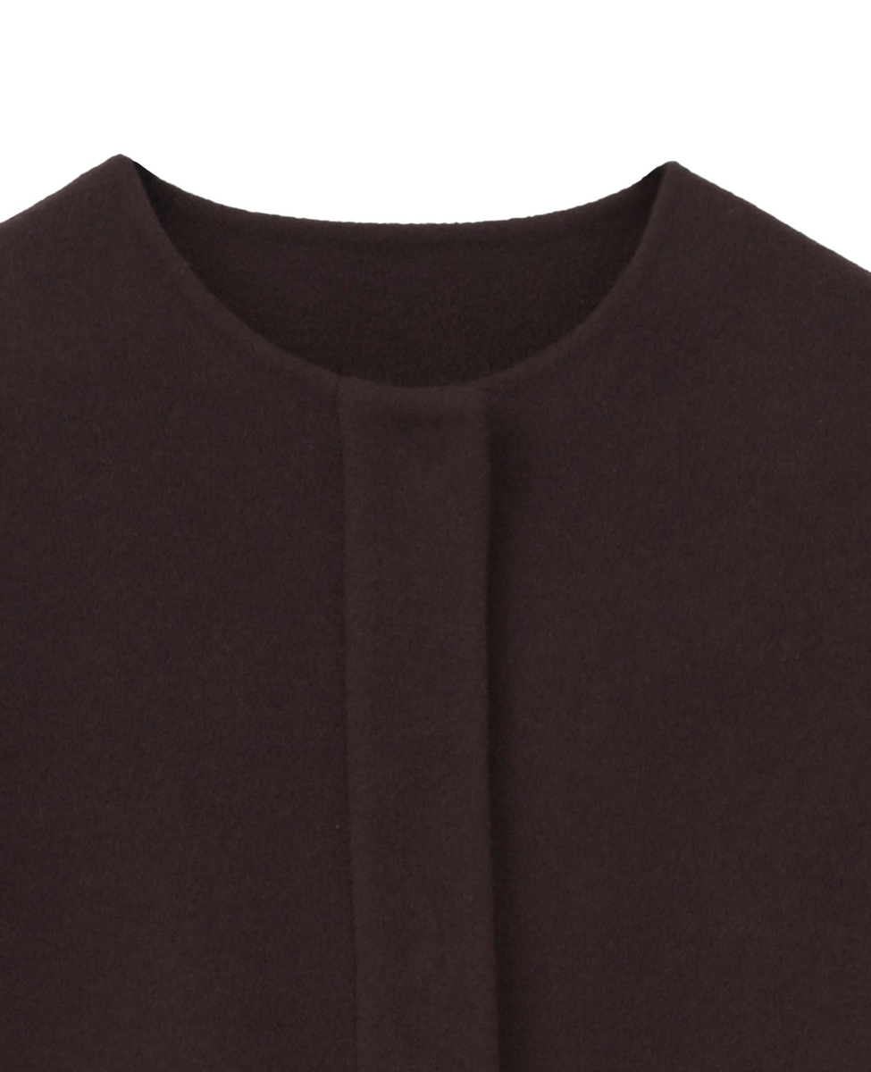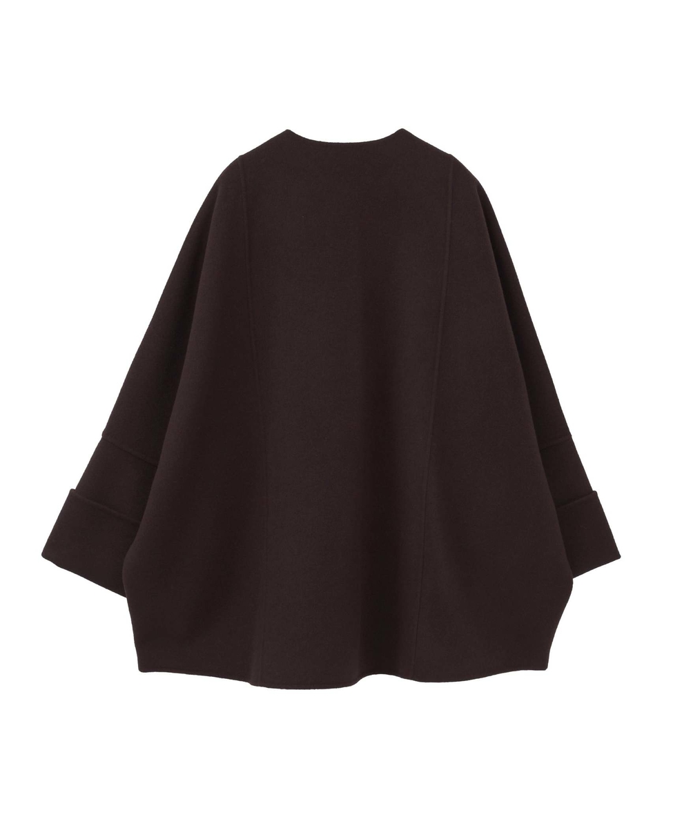 身幅は思い切り大きくした、ポンチョのようなノーカラーコートです。長めの袖丈でラフに折り返すのがポイントです。お尻下丈で様々なボトムと合わせやすい丈感です。