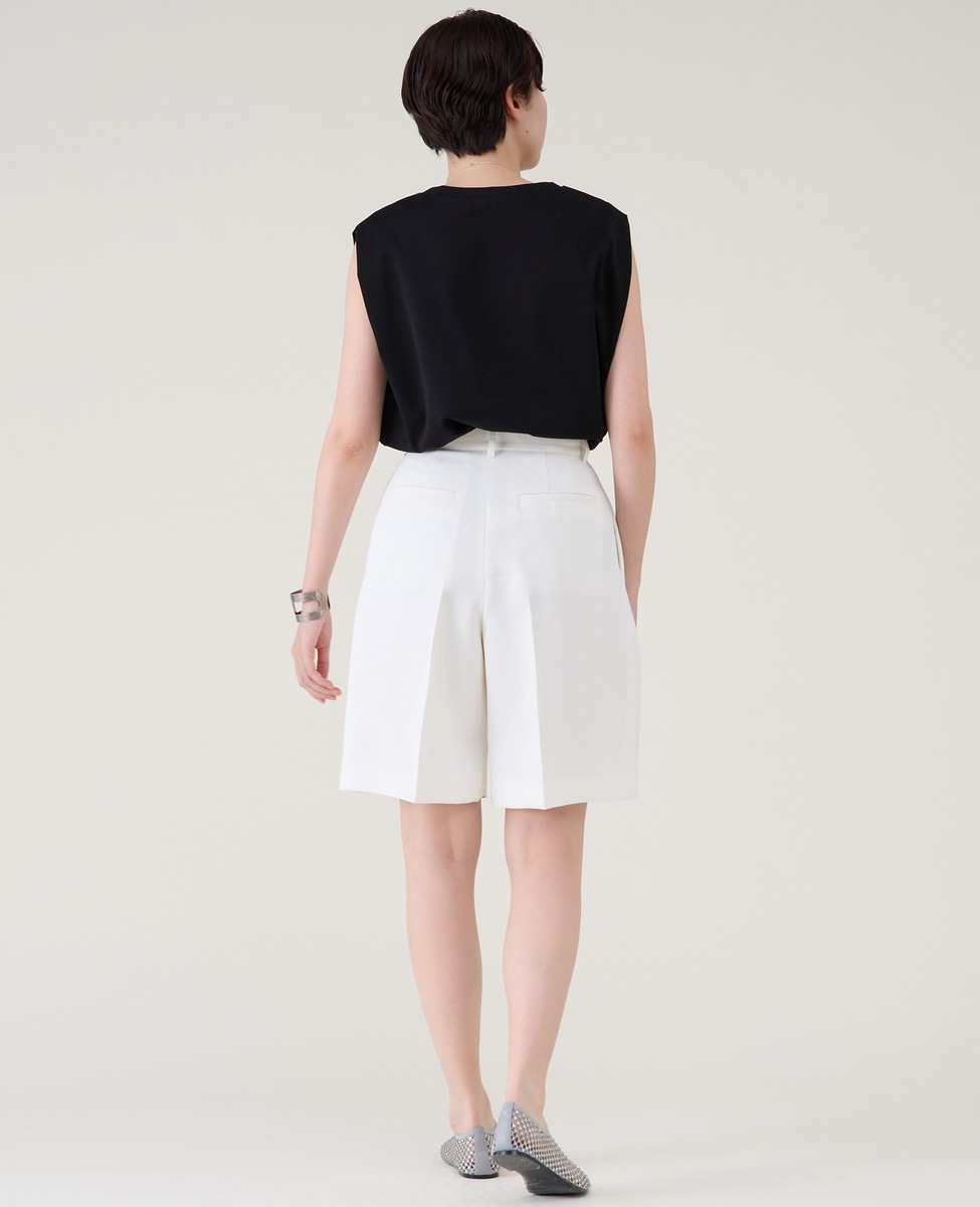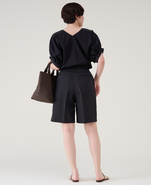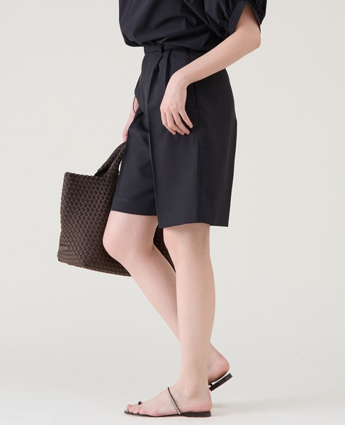 大人が履ける品の良いクラシックなショートパンツを作りました。広がりすぎないシルエットと長過ぎない絶妙な丈感がポイントです。