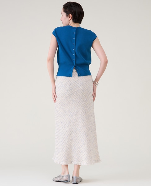 夏に向けて暑くなる時期の、カットソーよりもきれい目に着られるプルオーバーです。昨年よりもドライタッチな糸にすることで、着ていただける時期が長くなりました。フロンタブルデザイン。