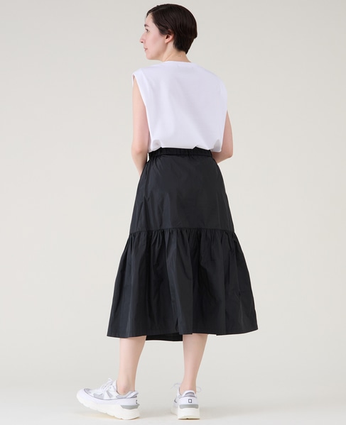 裾が落ちて今までより長めに着用できるので、タイトスカートなど細身のボトムとも着合わせやすいです。