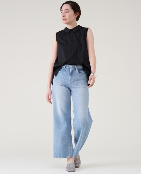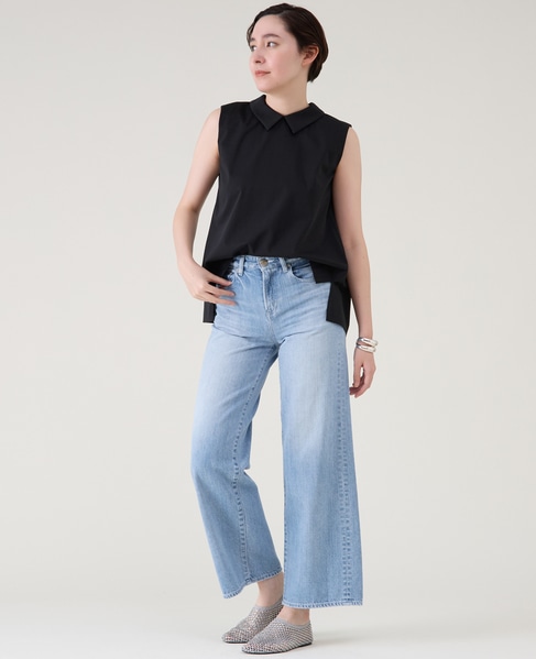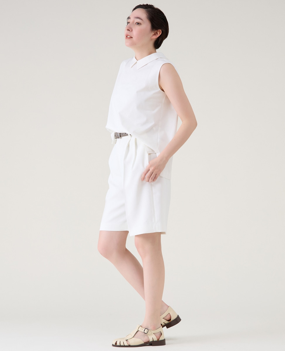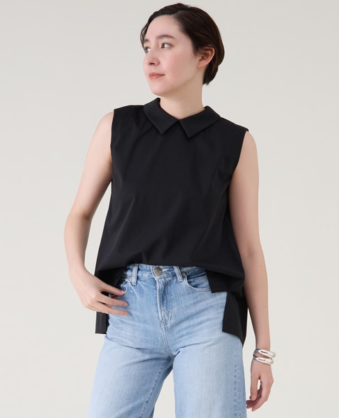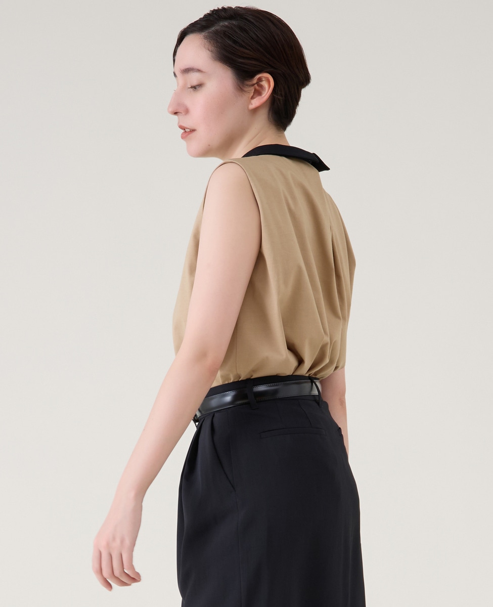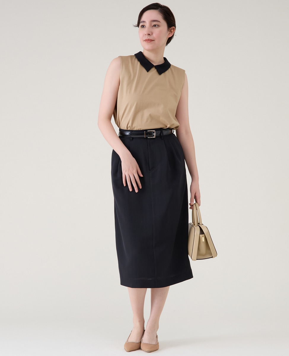 衿付きなのでカジュアルになりがちな夏の装いにきちんと感が加わります。フレンチスリーブなので脇周りの気になる部分は隠しつつ、涼し気な印象です。