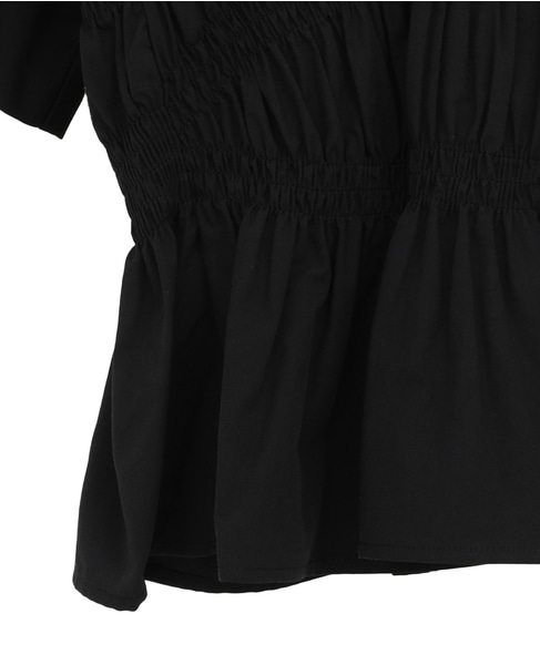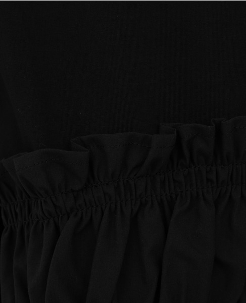 上半分はカットソーなので気軽に着ていただけます。シャーリングのシャツ地部分はゆるく身体にフィットします。