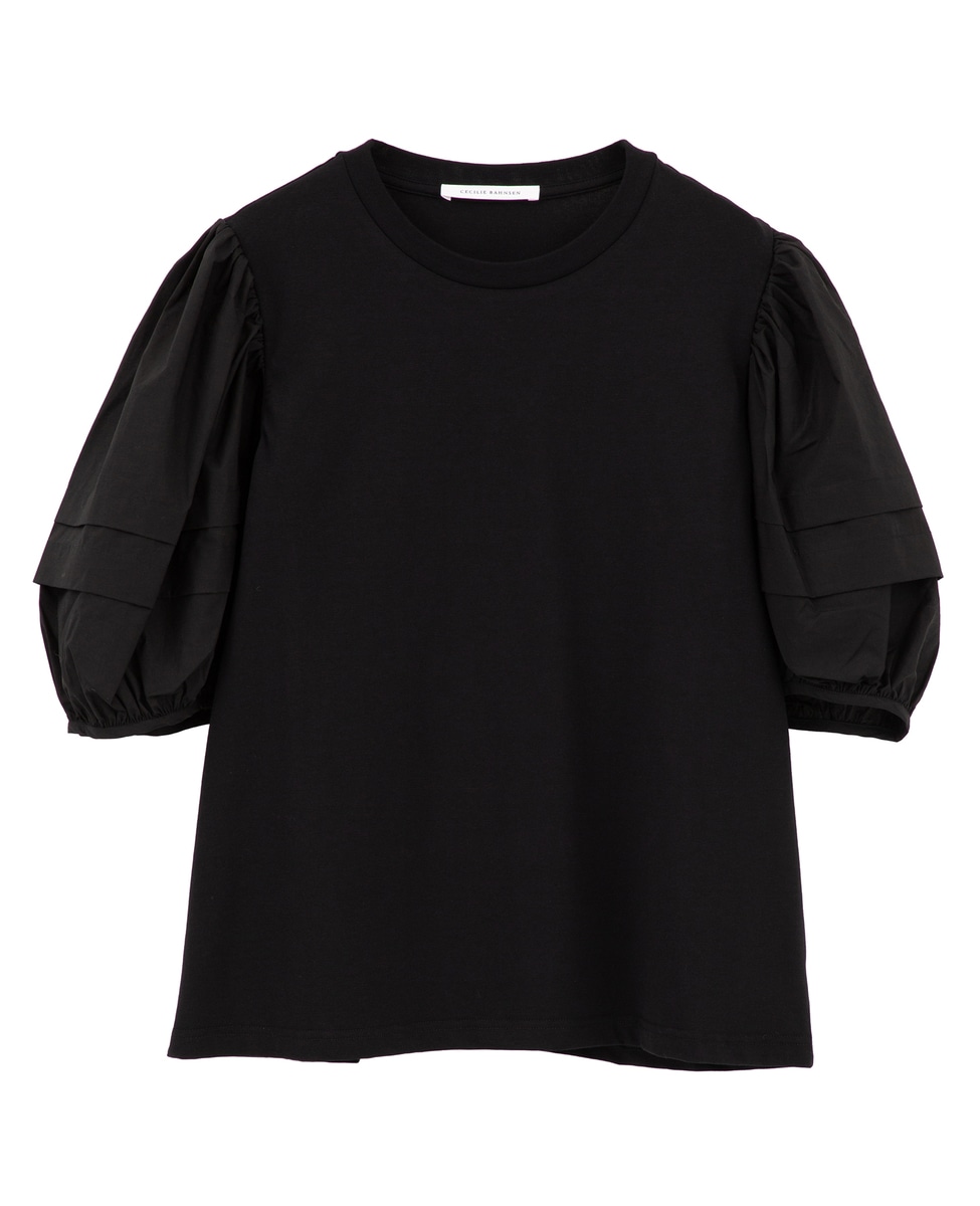 2.25RTW19002 PUFF SLEEVE T-SHIRT WITH CONTRAST PLEATED SLEEVES