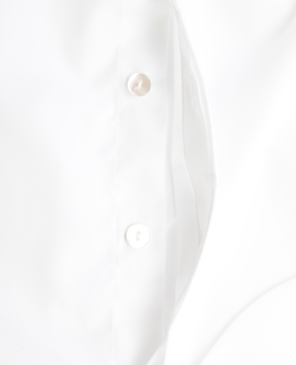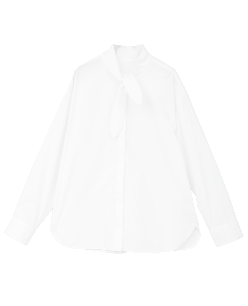 今季注目のスカーフを巻いたようなデザインのトラッドテイストのシャツです。程よいゆとり感を入れたサイズ感です。