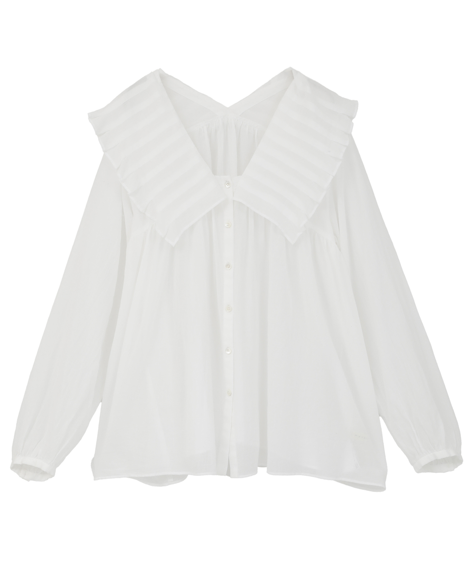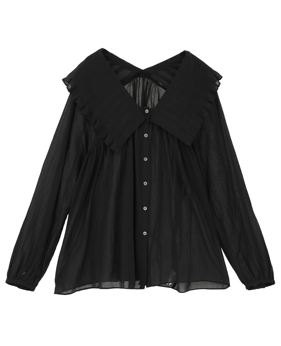 コットンシフォンプリーツカラーブラウス
