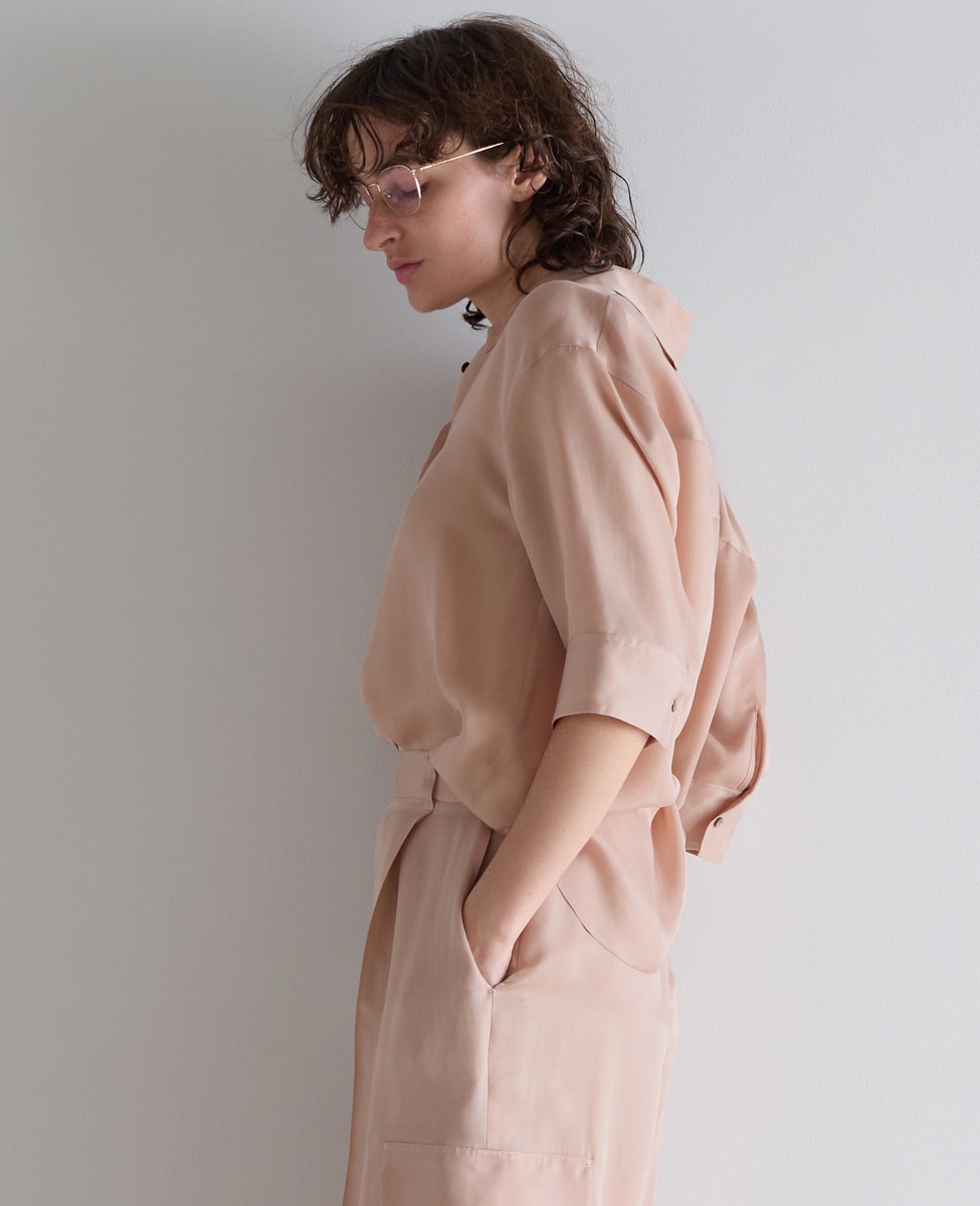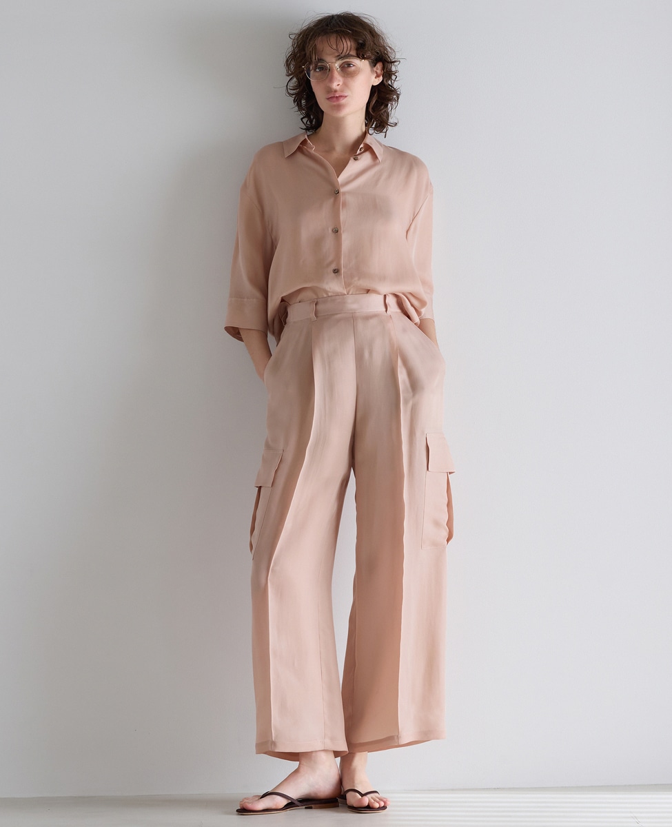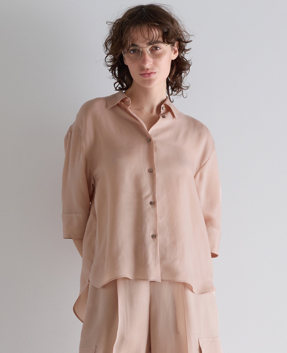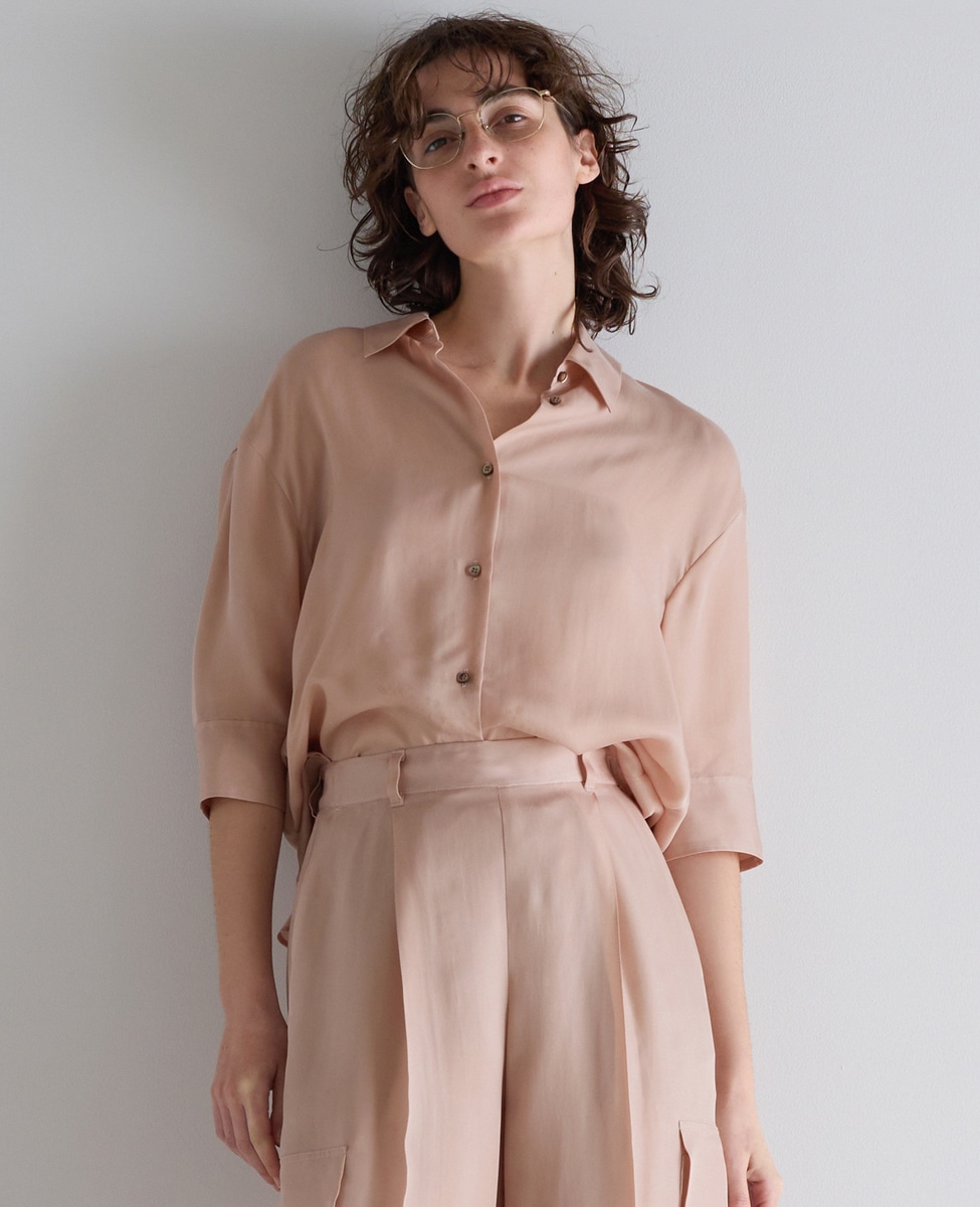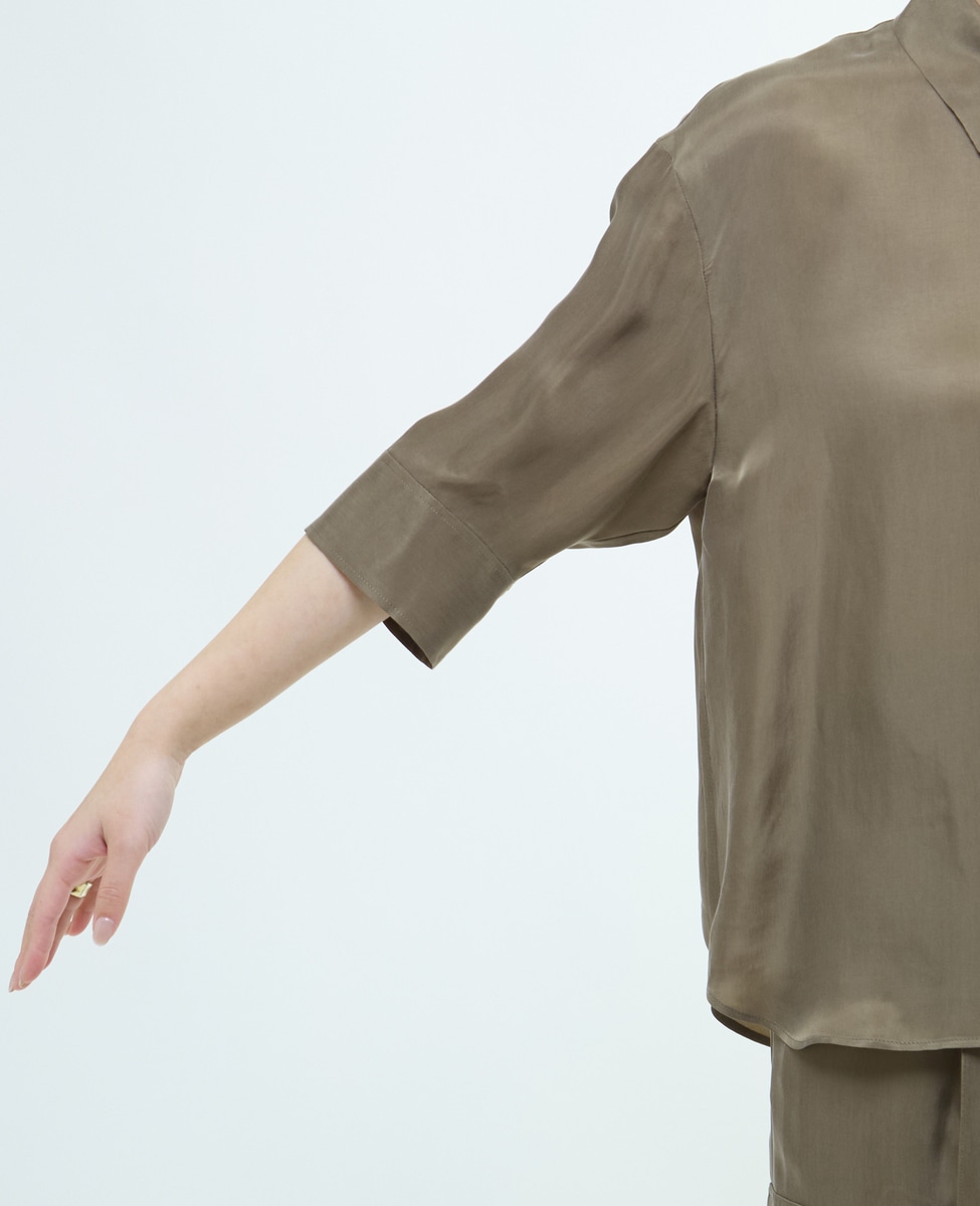 シルキーキュプラオーバーサイズスリーブシャツ(セットアップ可)