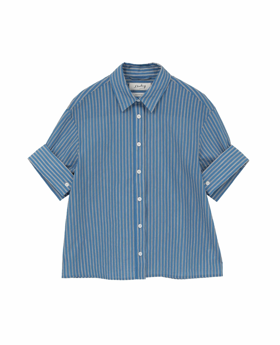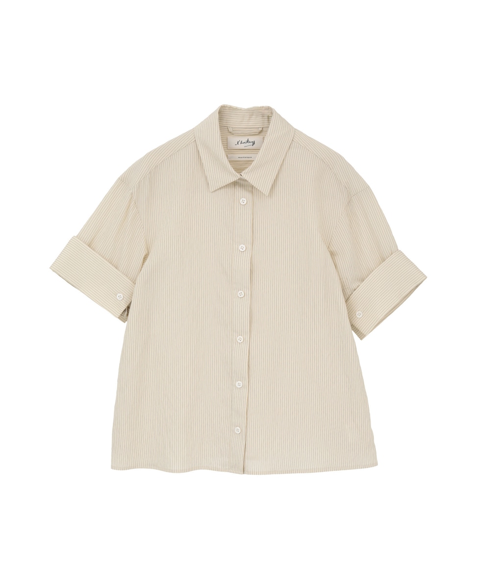 【l’heritage martinique/レリタージュ マルティニーク】コージーストライプショートスリーブシャツ(セットアップ可)