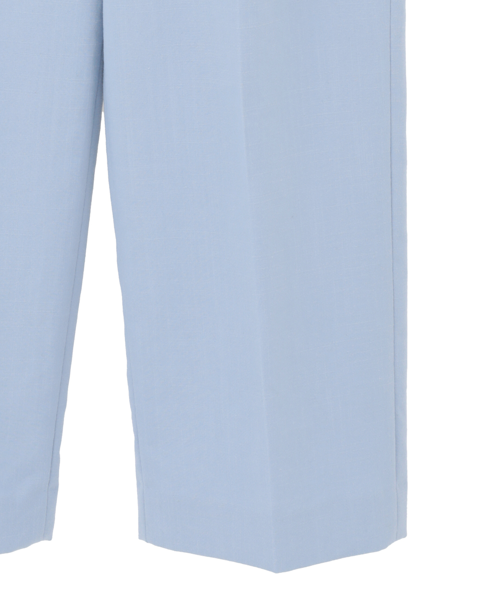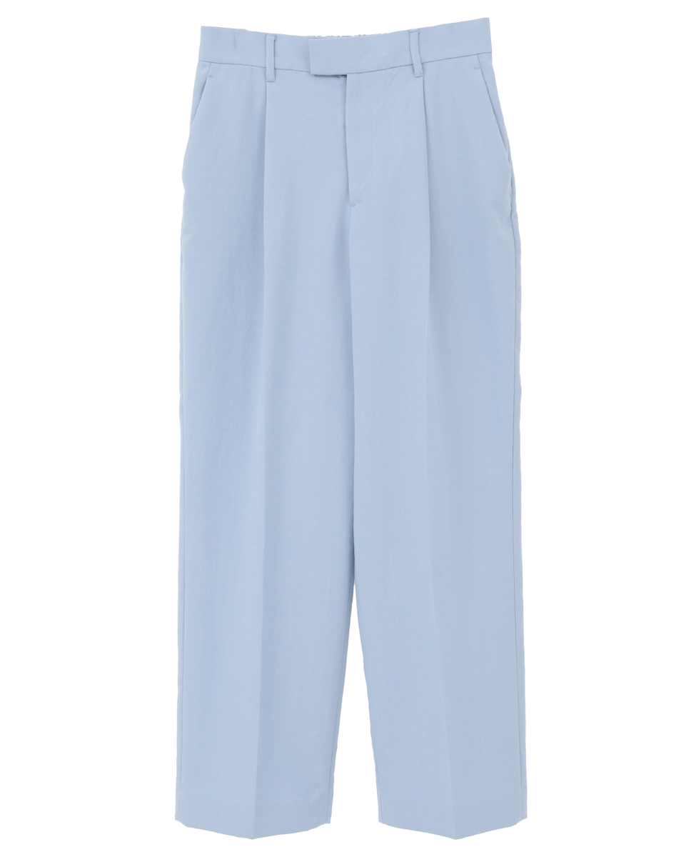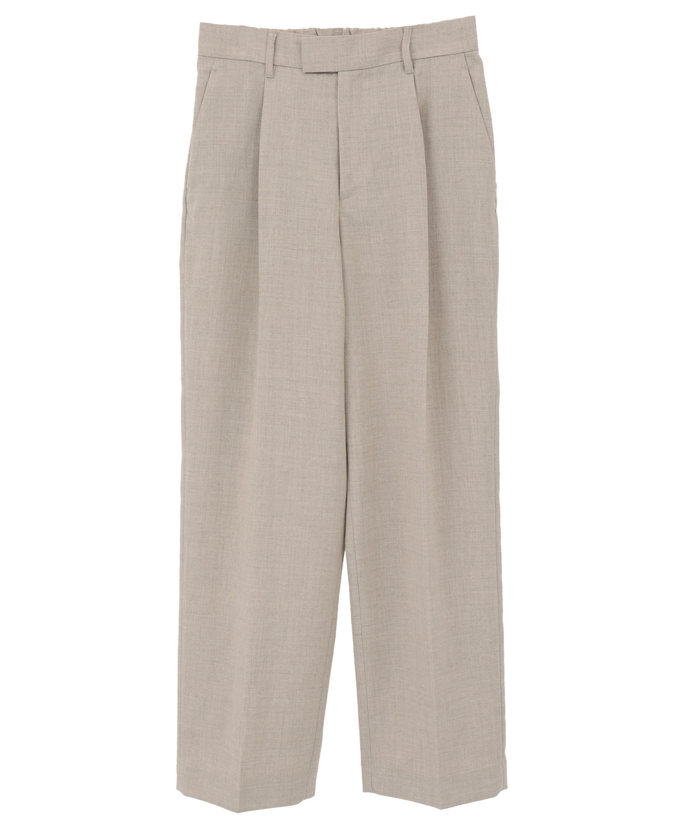 同素材のジャケットと合わせられる セットアップ仕様で、ワンタックを入れたた上品さと快適さを両立したストレートシルエットが特徴です。フロントはすっきりとした印象を保ちながら、 ウエスト後ろ部分のみゴム仕様(バックゴム)にすることで、見た目のきちんと感を損なわずに快適な履き心地を実現しています。脚のラインをまっすぐ美しく見せる センタープレスが施されており、縦のラインが強調されることで、脚長効果と全体のシャープな印象を演出。オフィスシーンからフォーマル・セミフォーマル、またはきれいめのデイリースタイルまで、幅広い場面で活躍するデザインです。
