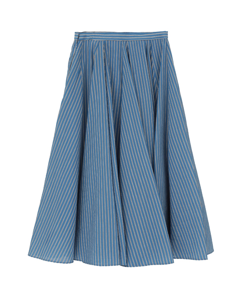 【l’heritage martinique/レリタージュ マルティニーク】コージーストライプフレアミディスカート(セットアップ可)