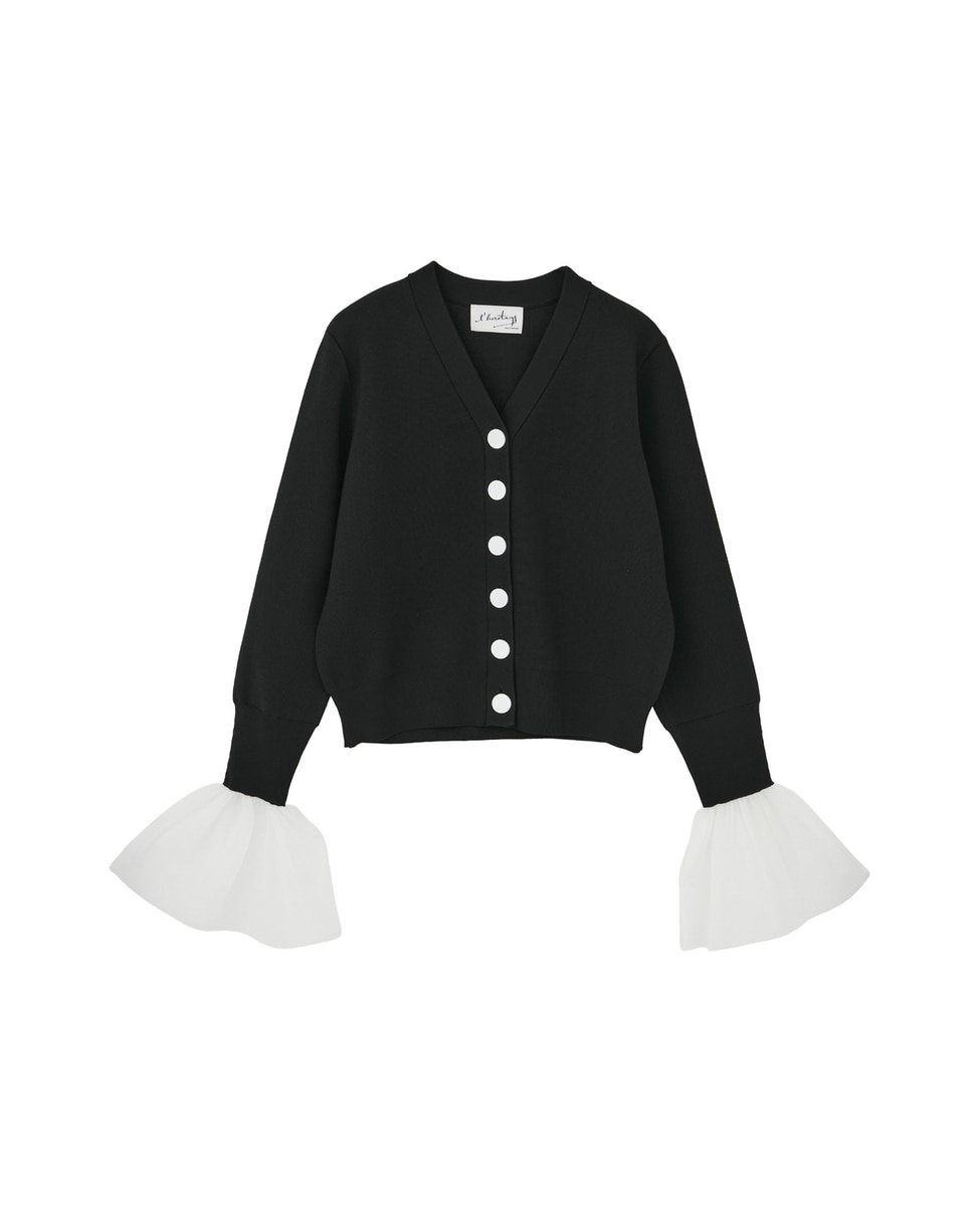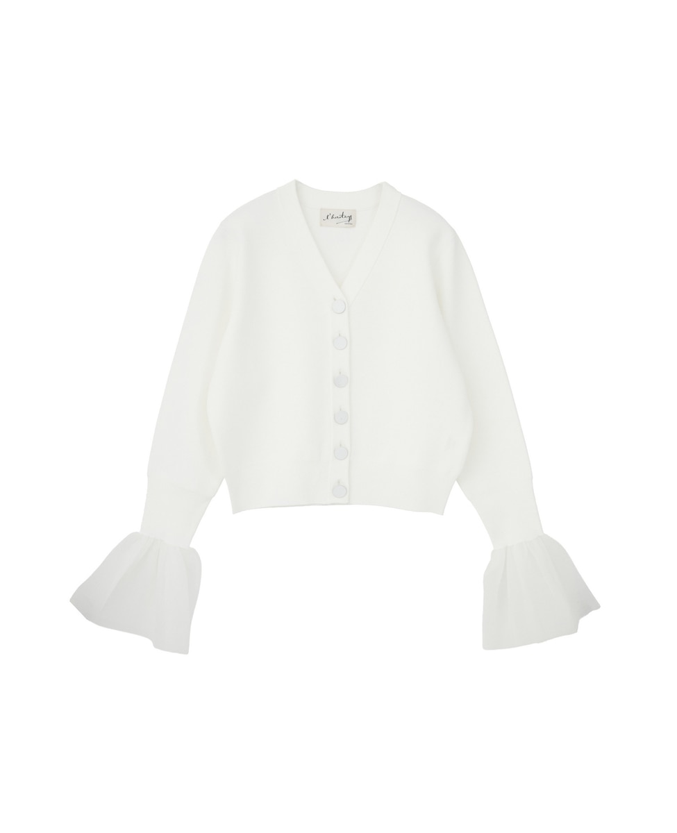 【l’heritage martinique/レリタージュ マルティニーク】ミラノリブVネックフレアスリーブカーディガン
