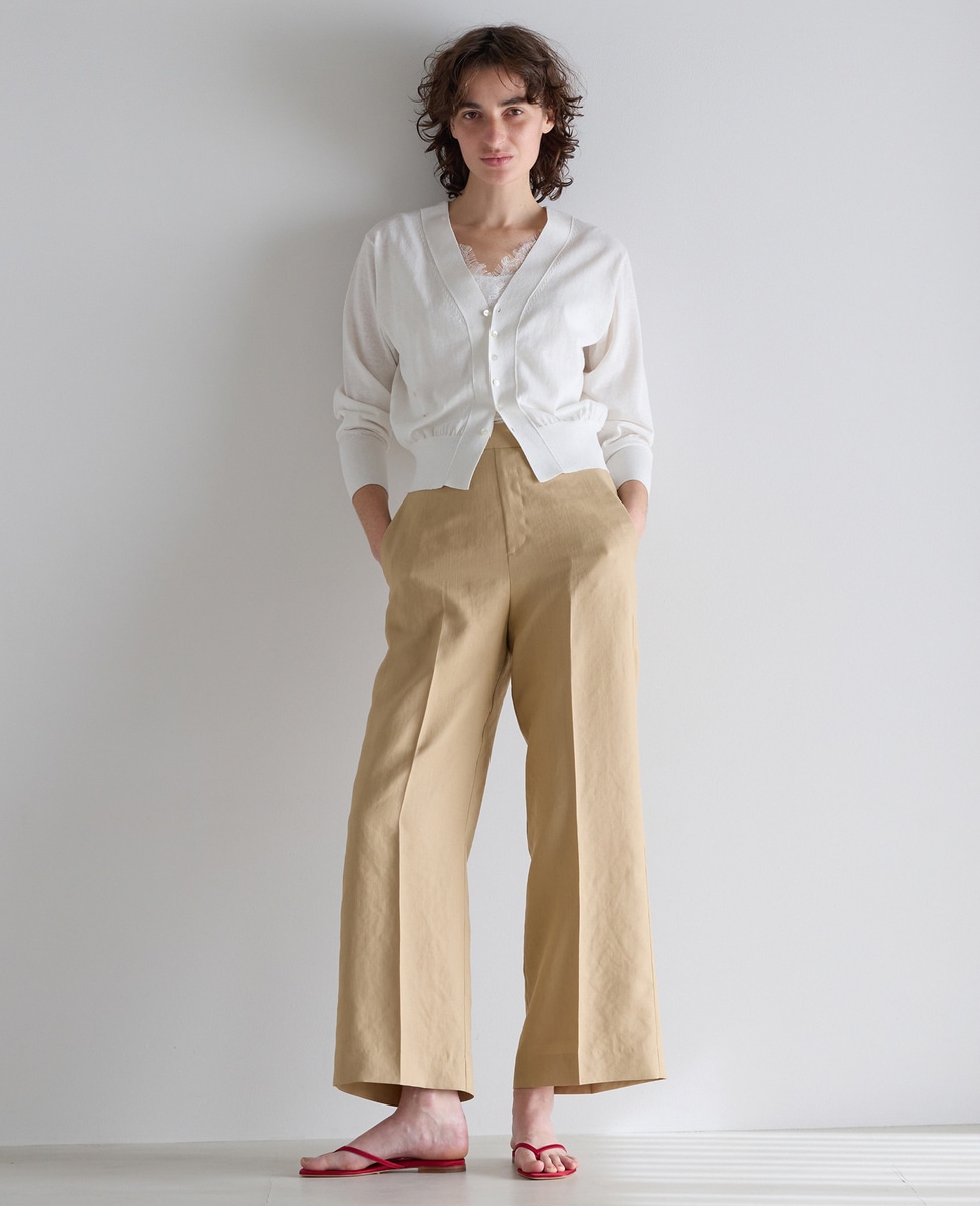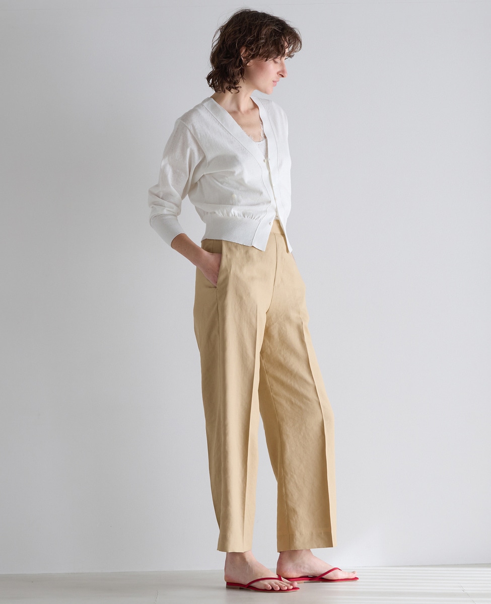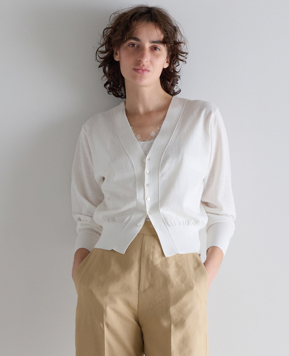 リネンのナチュラルさはありつつも、どこかキレイ目な大人の麻カーディガン。