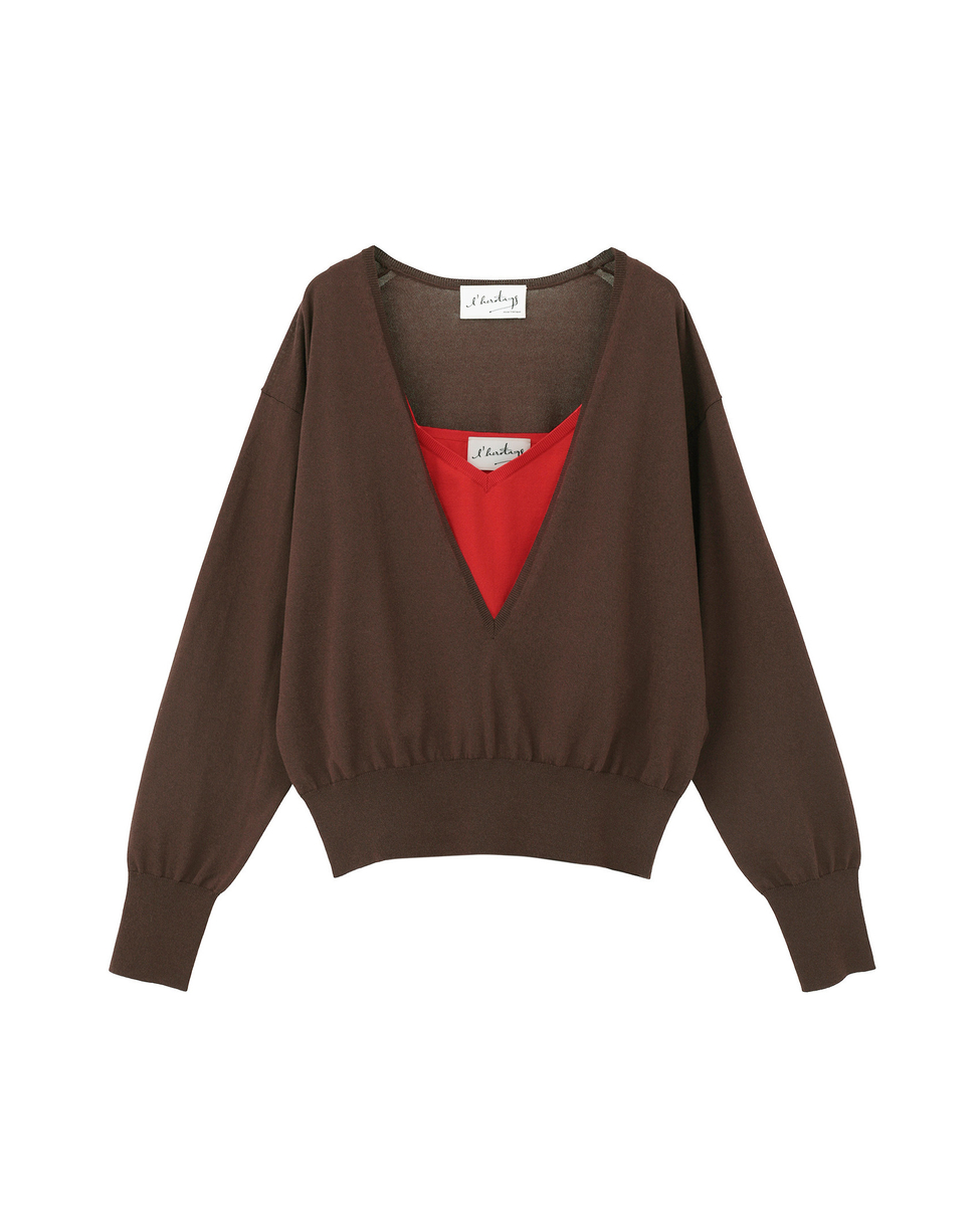 【l’heritage martinique/レリタージュ マルティニーク】深Vプルオーバーツインセット