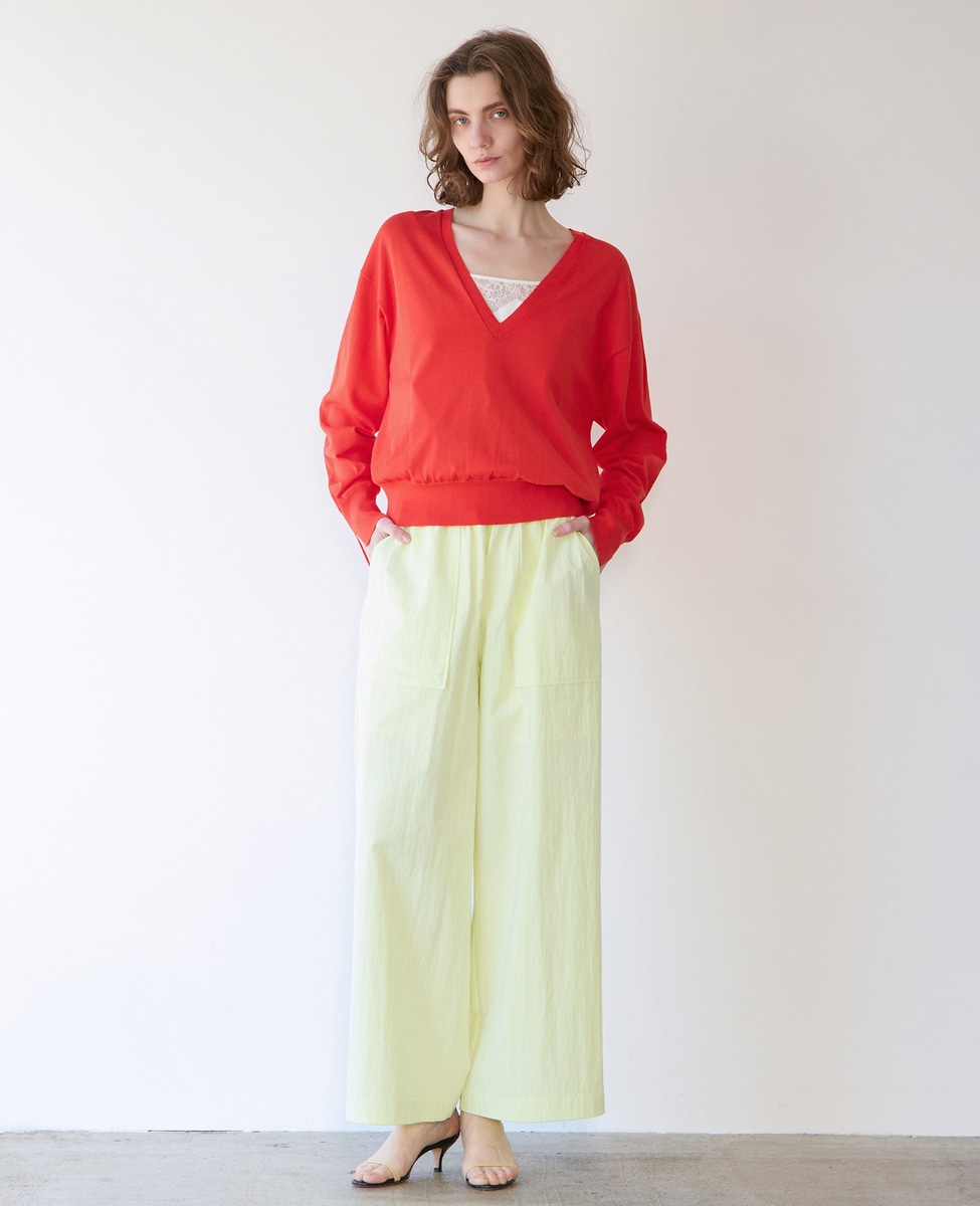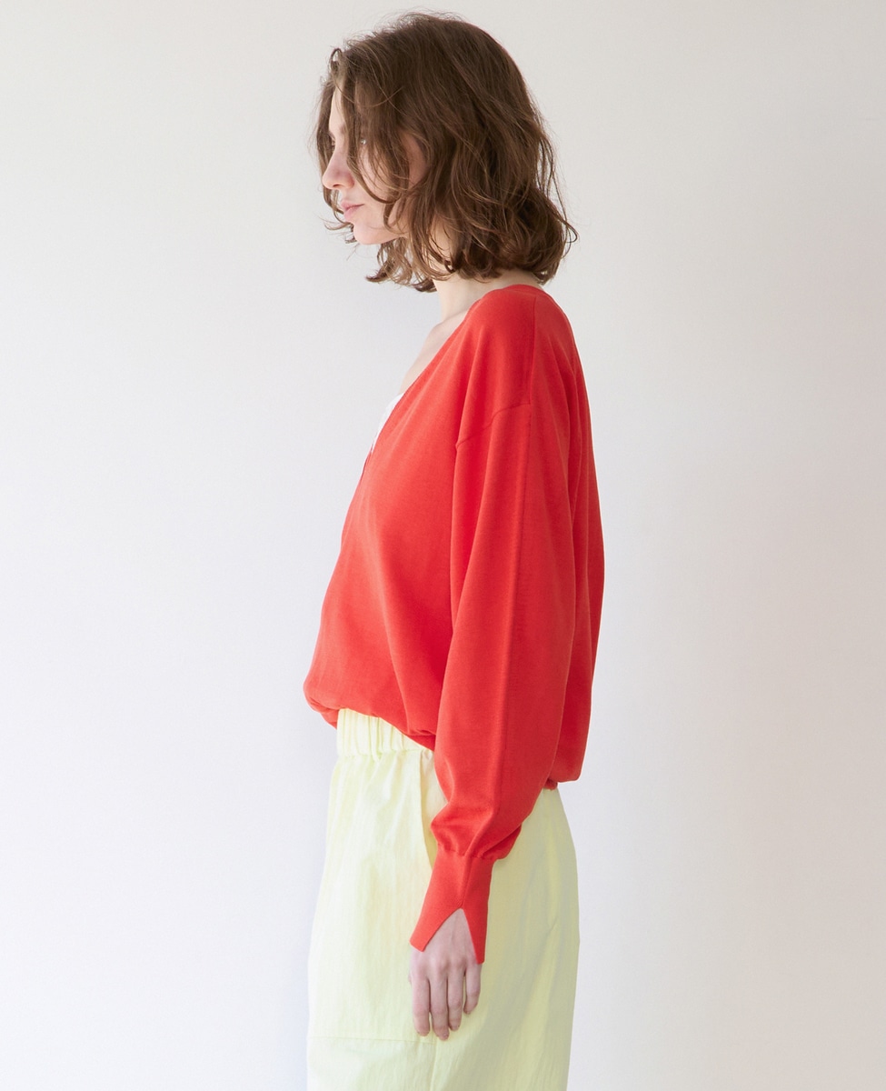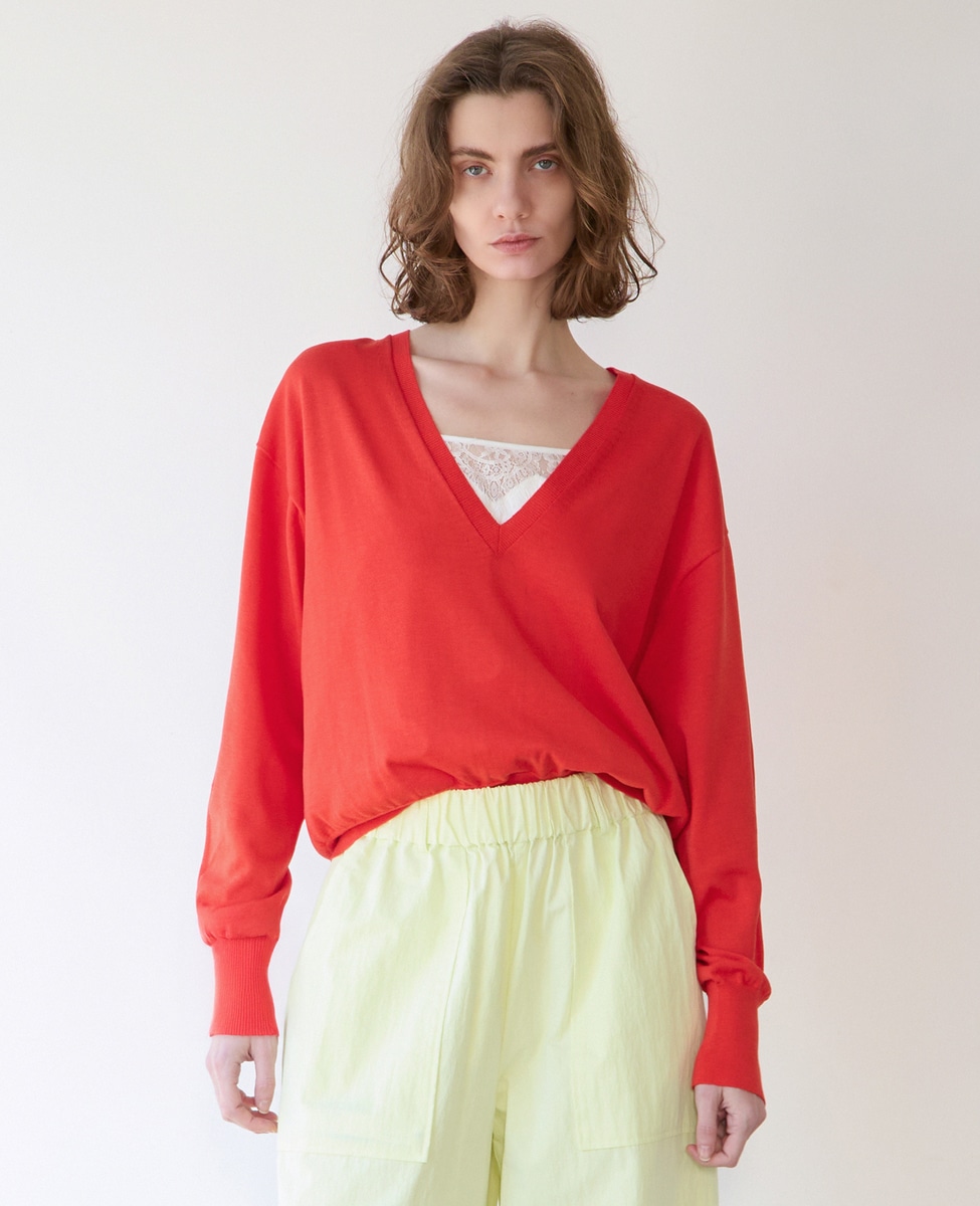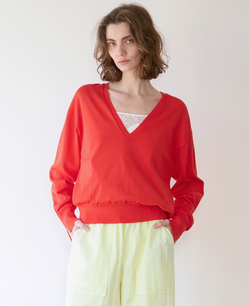 ブライトコットンシルクVネックニット