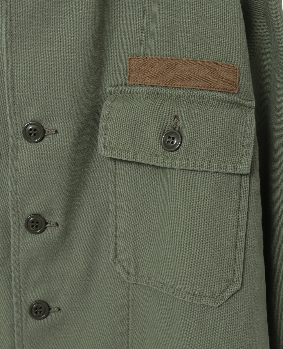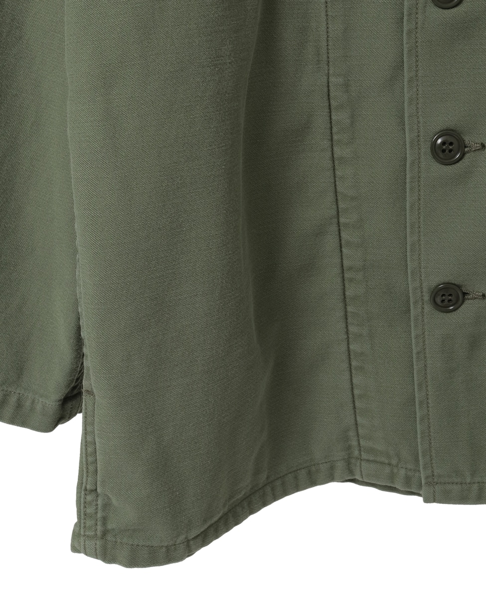 〈 MARRAKESH 〉柔らかく、甘く織り上げられたMADISONBLUEオリジナルのバックサテン生地。さらに原反で特殊なバイオ加工が施されたことにより、独特なぬめり感と着心地の良さが生まれました。ラフに着たいミリタリーJKはシャツとしても、羽織としても。両腕に付けたワッペンのひとつには、MADISONBLUEのMB刺繍入り。両サイドにはポケット付き。