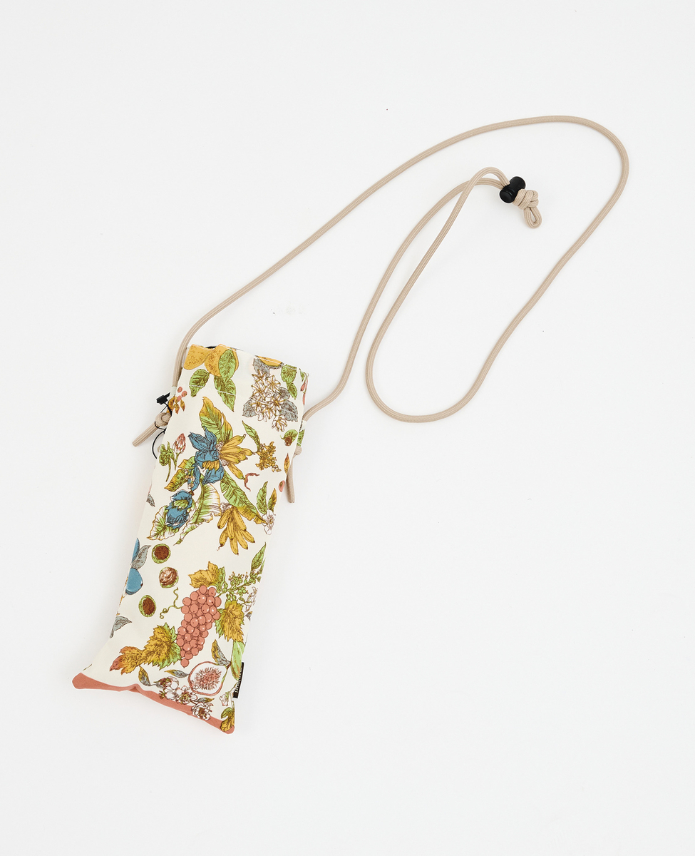 ショルダー付共生地付き。袋の裏に吸水布付きです。肩にかけてハンドフリーになれる便利なアイテムです。【manipuri/マニプリ】ヴィンテージスカーフの魅力をたくさんの人へ伝えたいという思いから、2009年にマニプリはスタートしました。ヴィンテージスカーフからインスピレーションを得てつくられるスカーフは、素材やサイズにもこだわりを持ち、どんな巻き方でも美しく見えるよう計算されています。