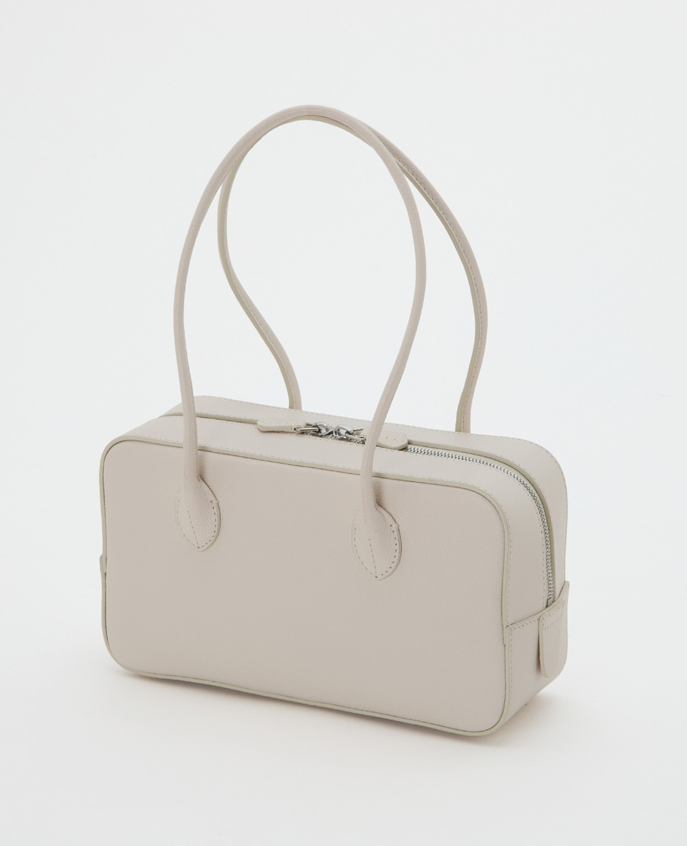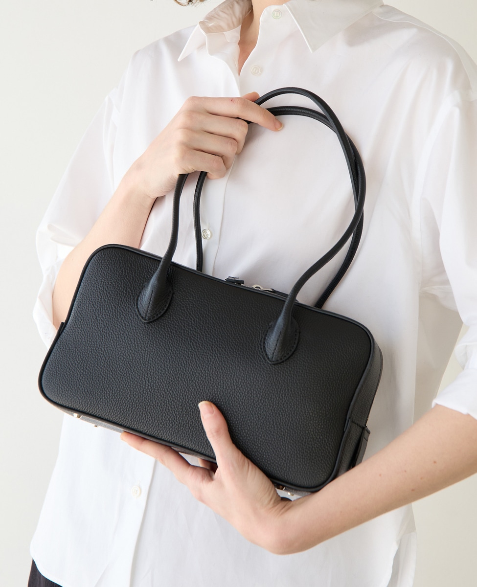 EWボックスボストンにMINIサイズが登場。シュリンクレザーのIVORYとBLACKで別注しました。EWよりひと回り小さいサイズながら、長財布もペットボトルも収納可能。華奢なハンドルに拘り芯材を日本から送り込むことで実現したデザインが人気。軽さとクオリティにこだわった裏地は日本から送り込み、使い勝手の良いWファスナー仕様を採用。シンプルで装飾を削ぎ落したミニマルなバッグからは職人による丁寧な手仕事を感じることができます。