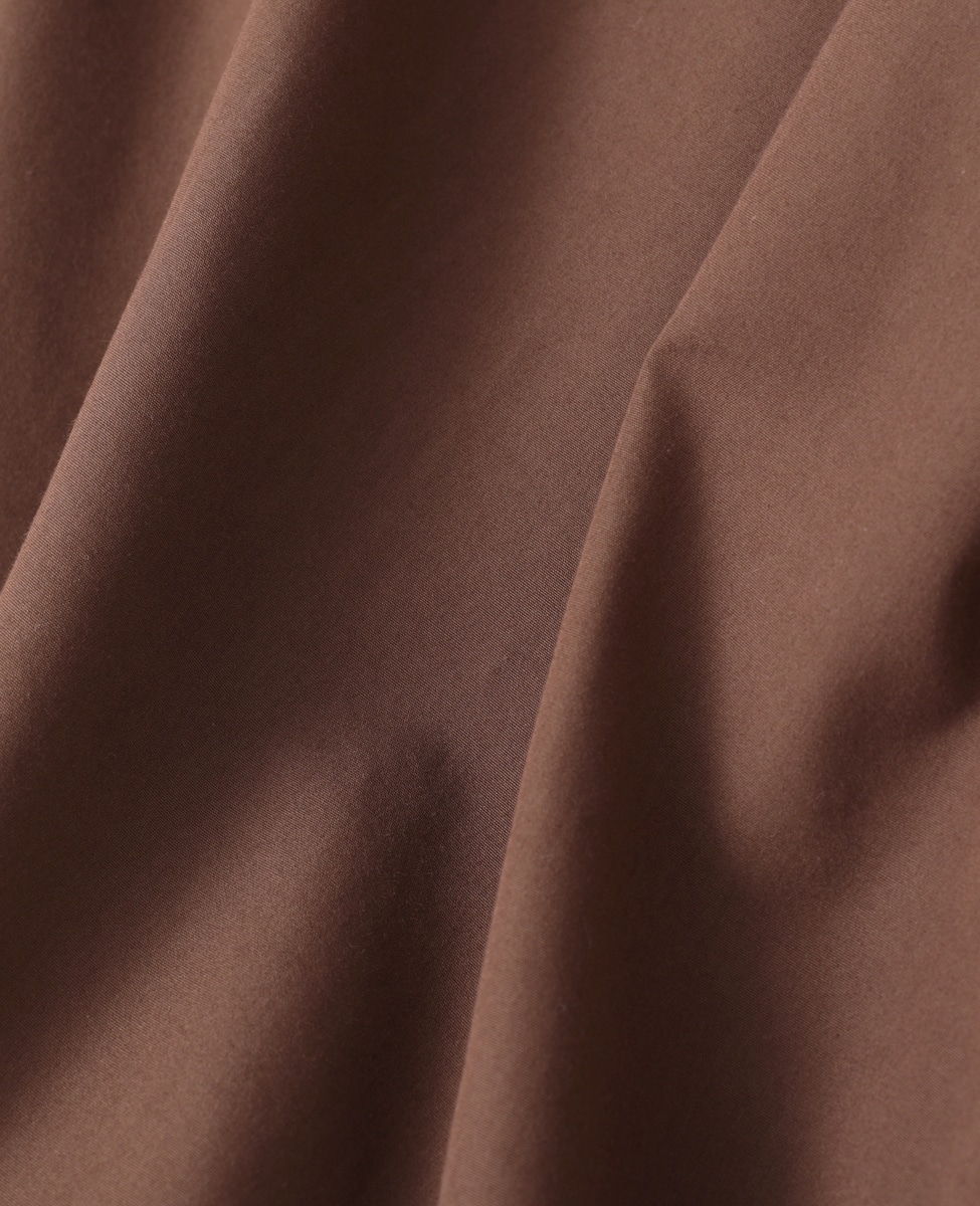 今シーズンのテーマである“Happiness of living" 肌触りの良いウェアでリラックスすることも1つのキーワード。パジャマライクな要素を盛り込んだアイテムを提案しています。無地は160番手の細いコットン糸を高密度に織り上げることでしなやかで自然な光沢感のある風合いに仕上げています。肌触りはとにかく最高です。色は絶妙なブルーグリーンと大人なブラウン。またサックスベースにさりげないホワイトのピンストライプ柄はキュプラを使用。ひんやりとした風合いが真夏でも気持ち良く着ることができます。