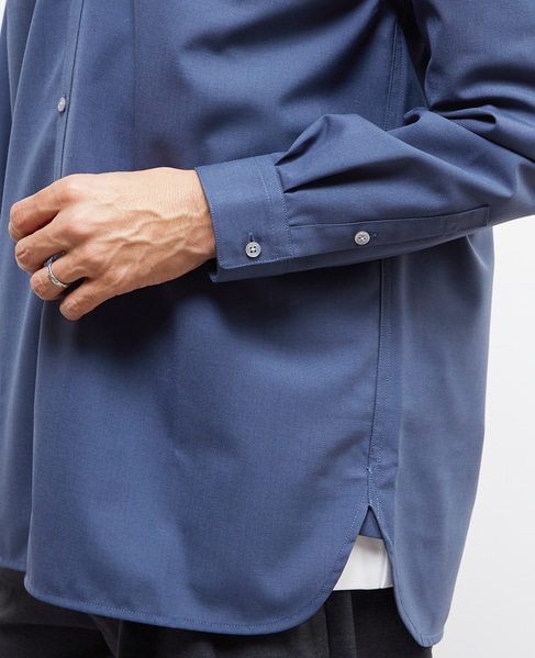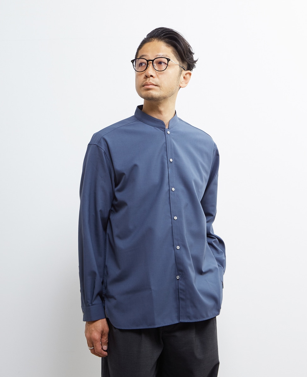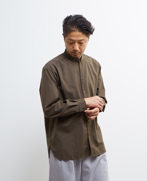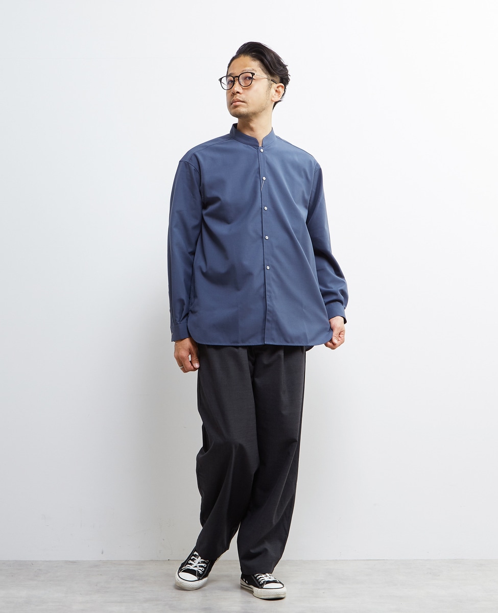 釦で留まるバンドカラーとはまた違った雰囲気でスタイリングを楽しめます。