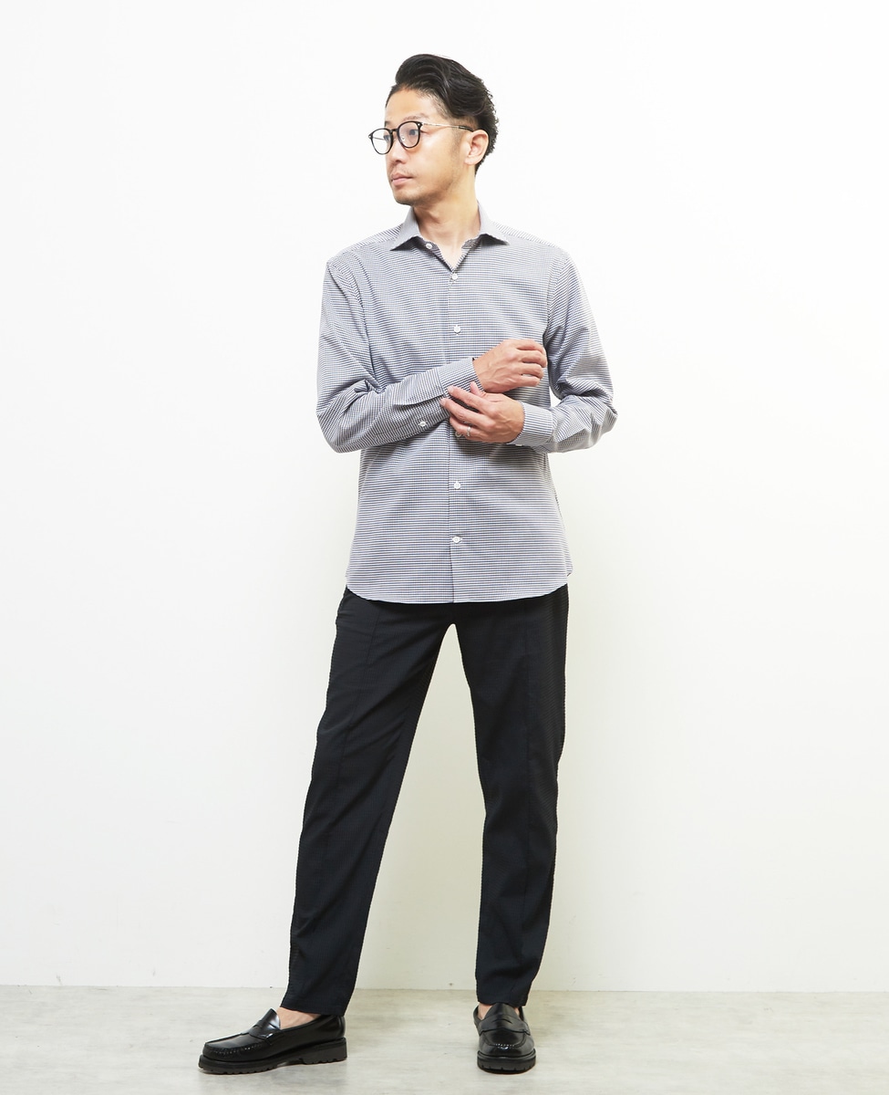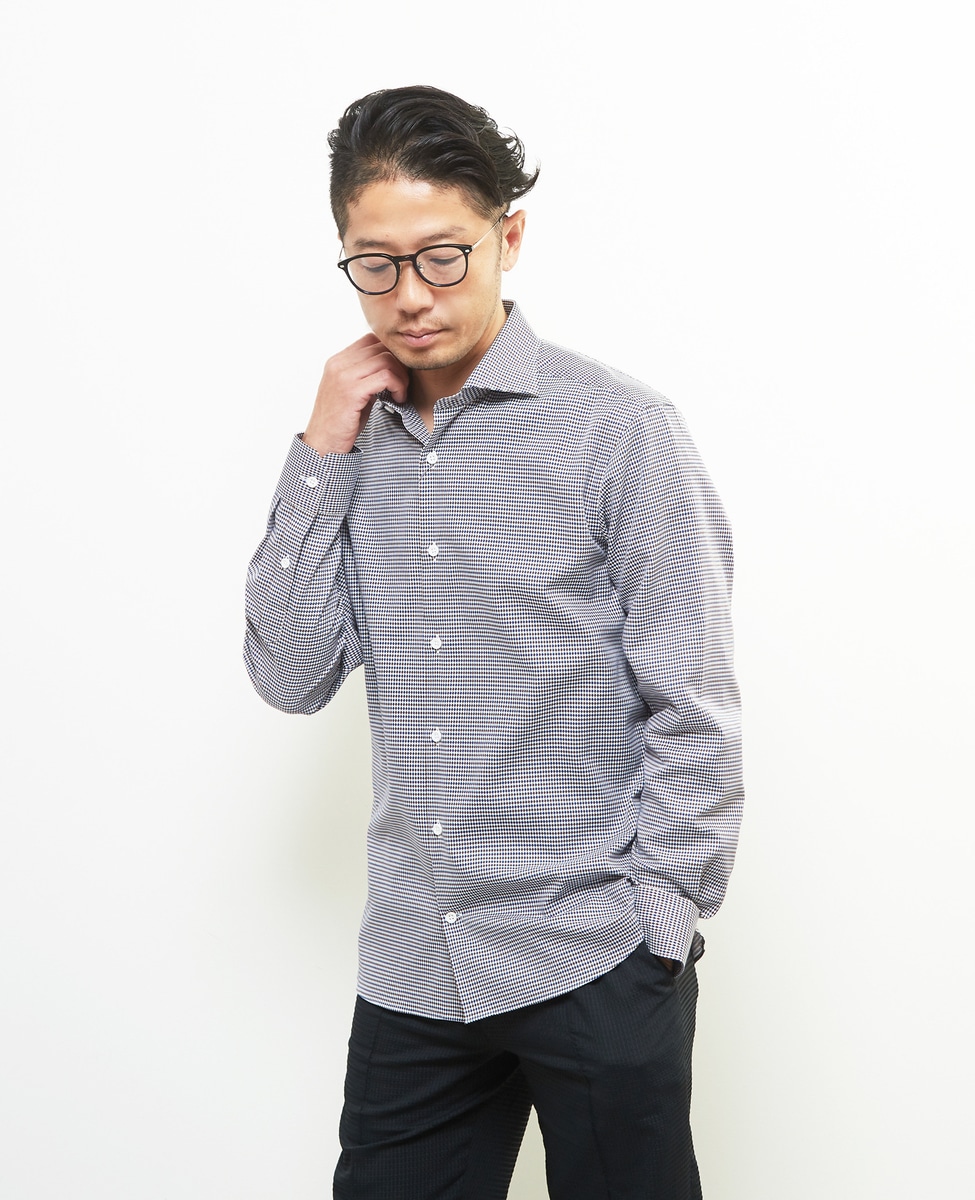 HITOYOSHIダブルネーム | ジオメトリックパターンワイドカラーシャツ