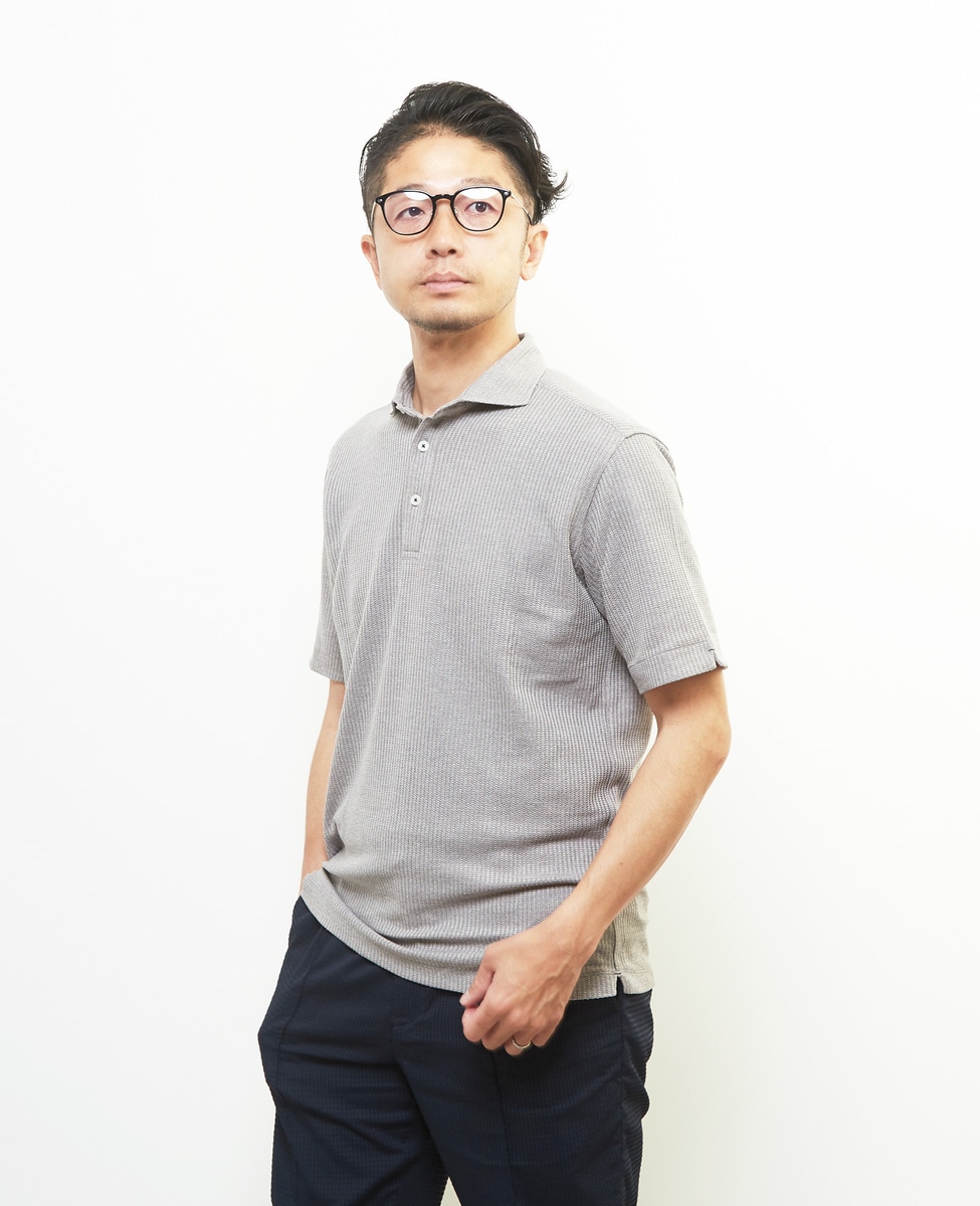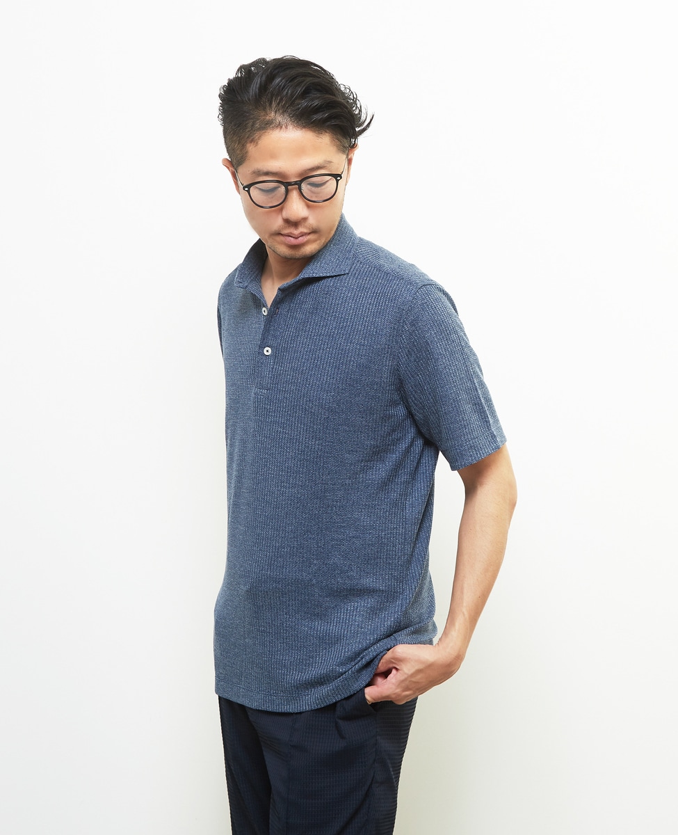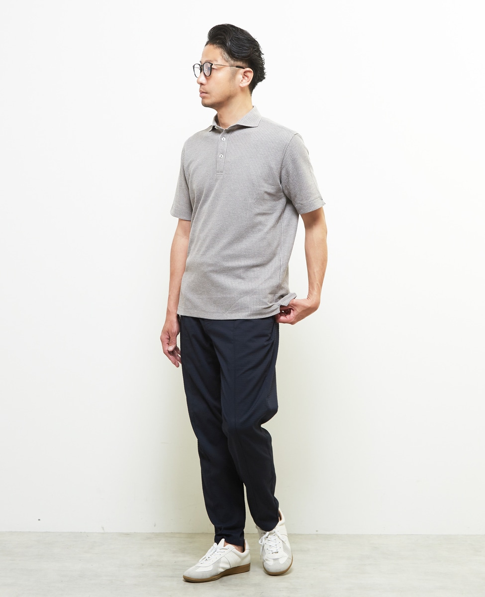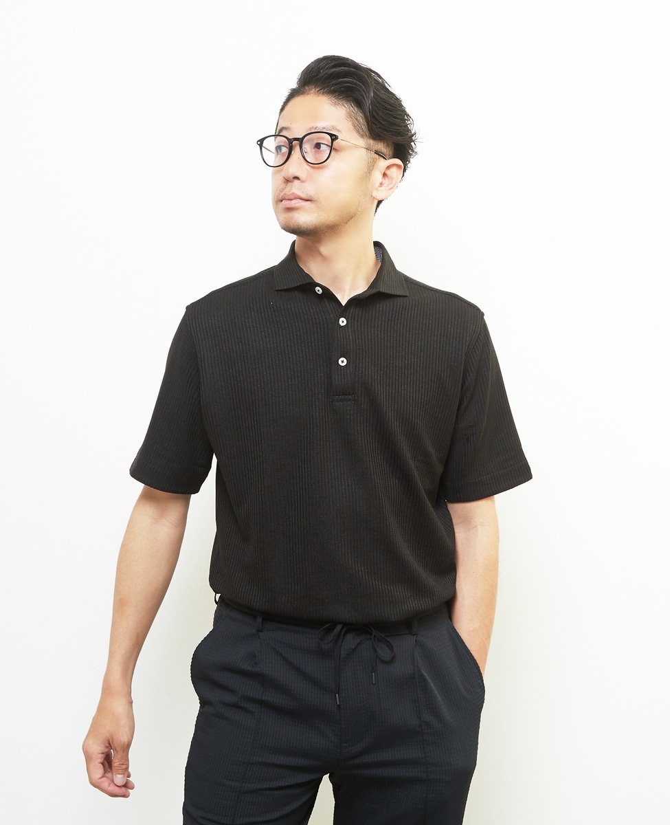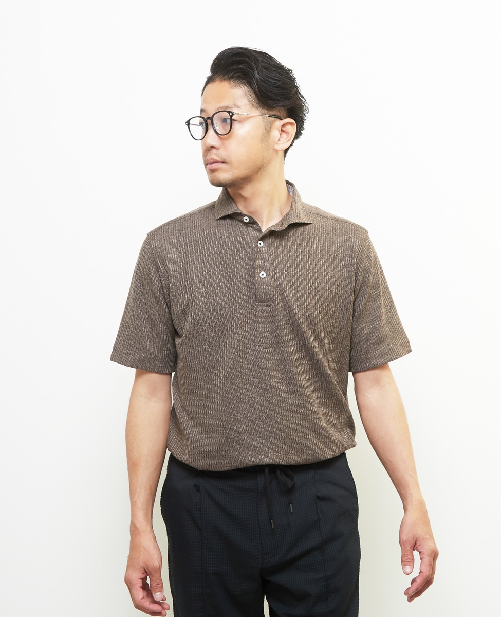 リンクスストライプ 半袖ホリゾンタルカラーポロシャツ